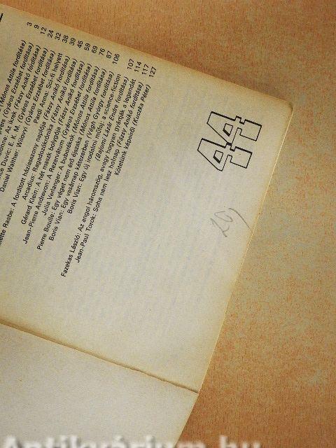 | Boris Vian: Egy új irodalmi műfaj: a science-fiction (Bajomi Lázár Endre fordítása) | 107 |