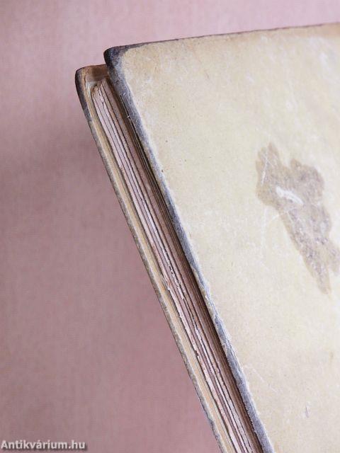 Belülről megerősített példány. A gerinc vászonnal pótolt. A borító kopott és foltos, éle sérült. Néhány oldal foltos.