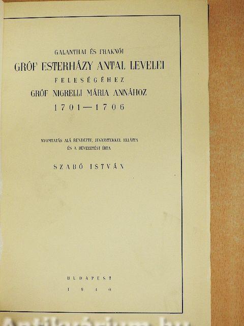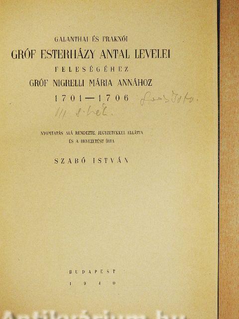 Galanthai és Fraknói gróf Esterházy Antal levelei feleségéhez gróf Nigrelli Mária Annához 1701-1706