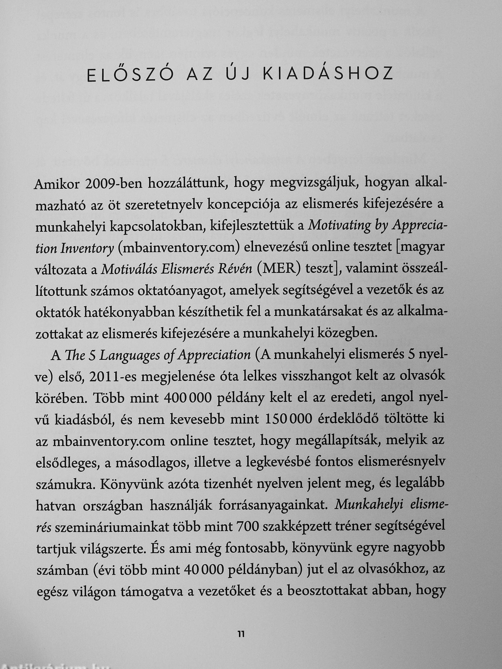 Dr. Gary Chapman, a világszerte elismert kapcsolati szakértő. Az 5 szeretetnyelv könyvsorozat szerzője, és dr. Paul White szervezetfejlesztő tanácsadó könyvéből kiderül, hogy a megerősítés, az elismerés és a bátorítás nemcsak a kapcsolatokat teszi jobbá, de nagyban hozzájárul a szervezetek hatékonyabb működéséhez is.