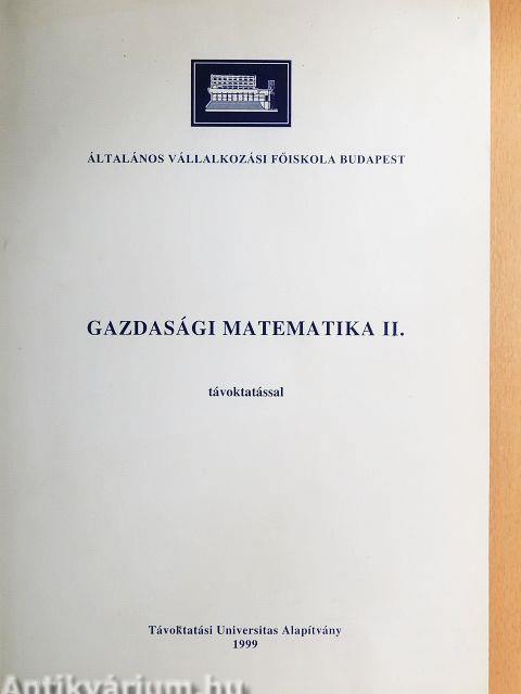 Gazdasági matematika II. távoktatással Gazdasági matematika II. távoktatással