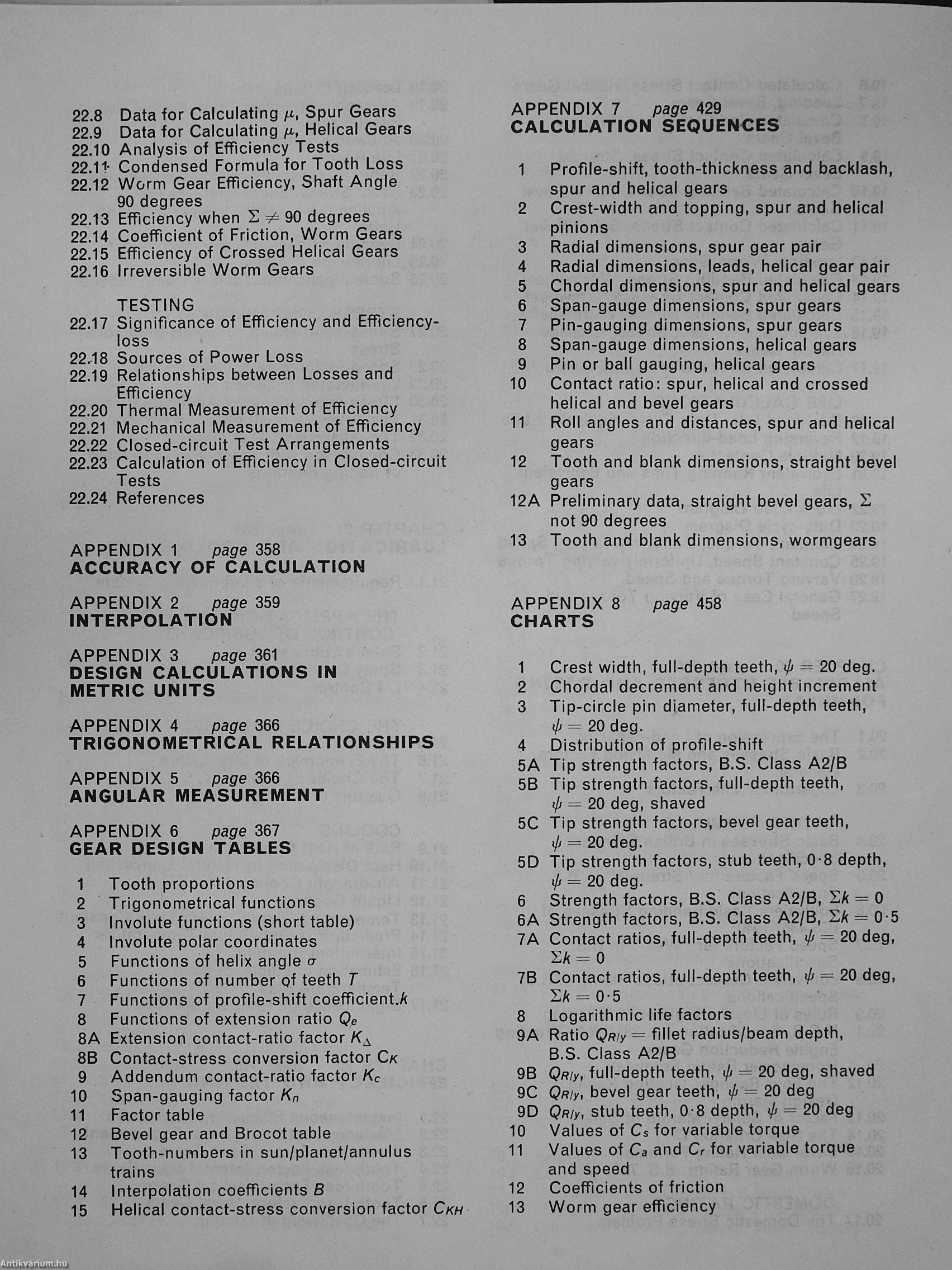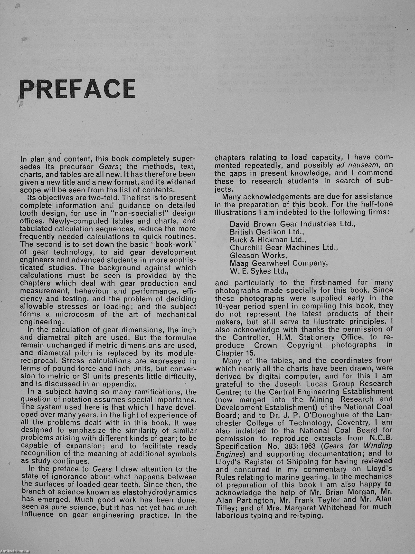 This book, a comprehensive work on gear engineering and design, and written by the foremost authority on the subject, will appeal particularly to members of all professional engineering institutions and societies. It is the culmination of over forty years' experience of gear development. A discussion of basic principles remains, in condensed form, but a particularly important feature in this work is that the basic design principles, once presented are extended into a number of calculation sequences, which can be used by draughtsmen and designers without the need of re-read the book-work. It is a highly worthy successor to H.E. Merritt's two earlier classics, "Gears" and "Gear Trains".