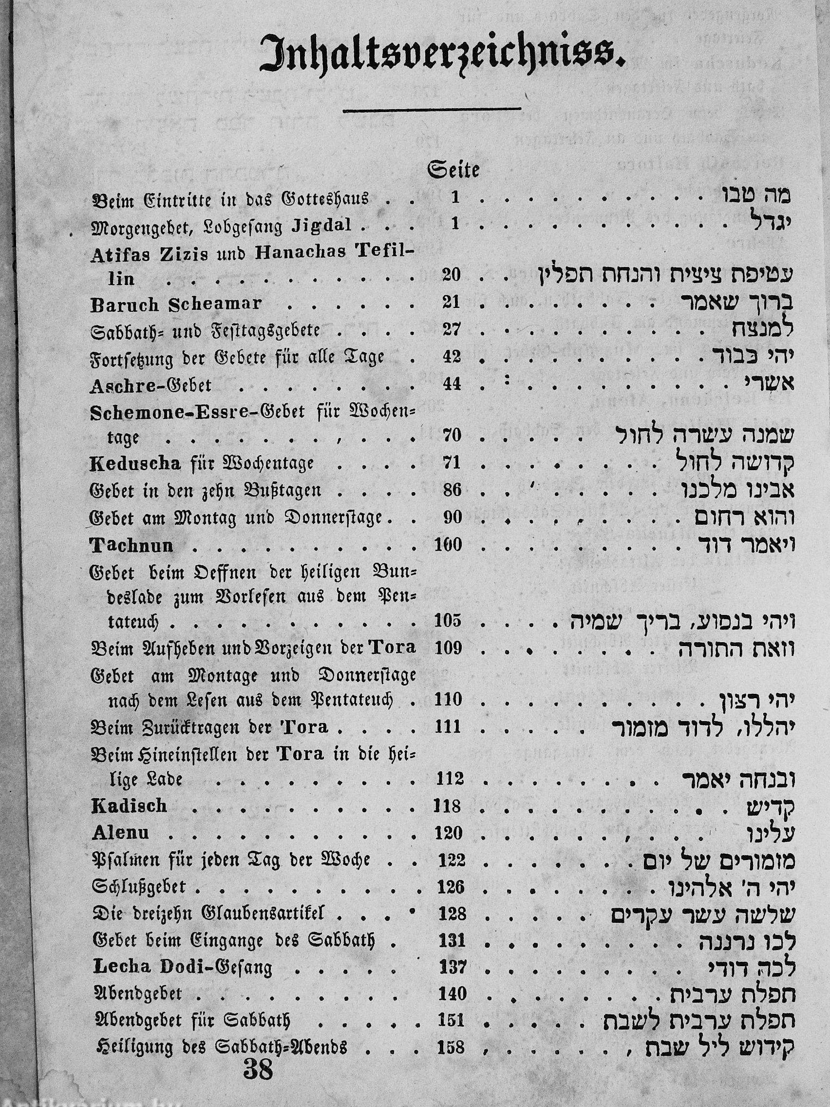 | Megjegyzés: | Az első kötéstábla réz rátétekkel és rézcsattal díszítve. A német rész gótbetűs. Nyomtatta M. I. Landau, Prága. |