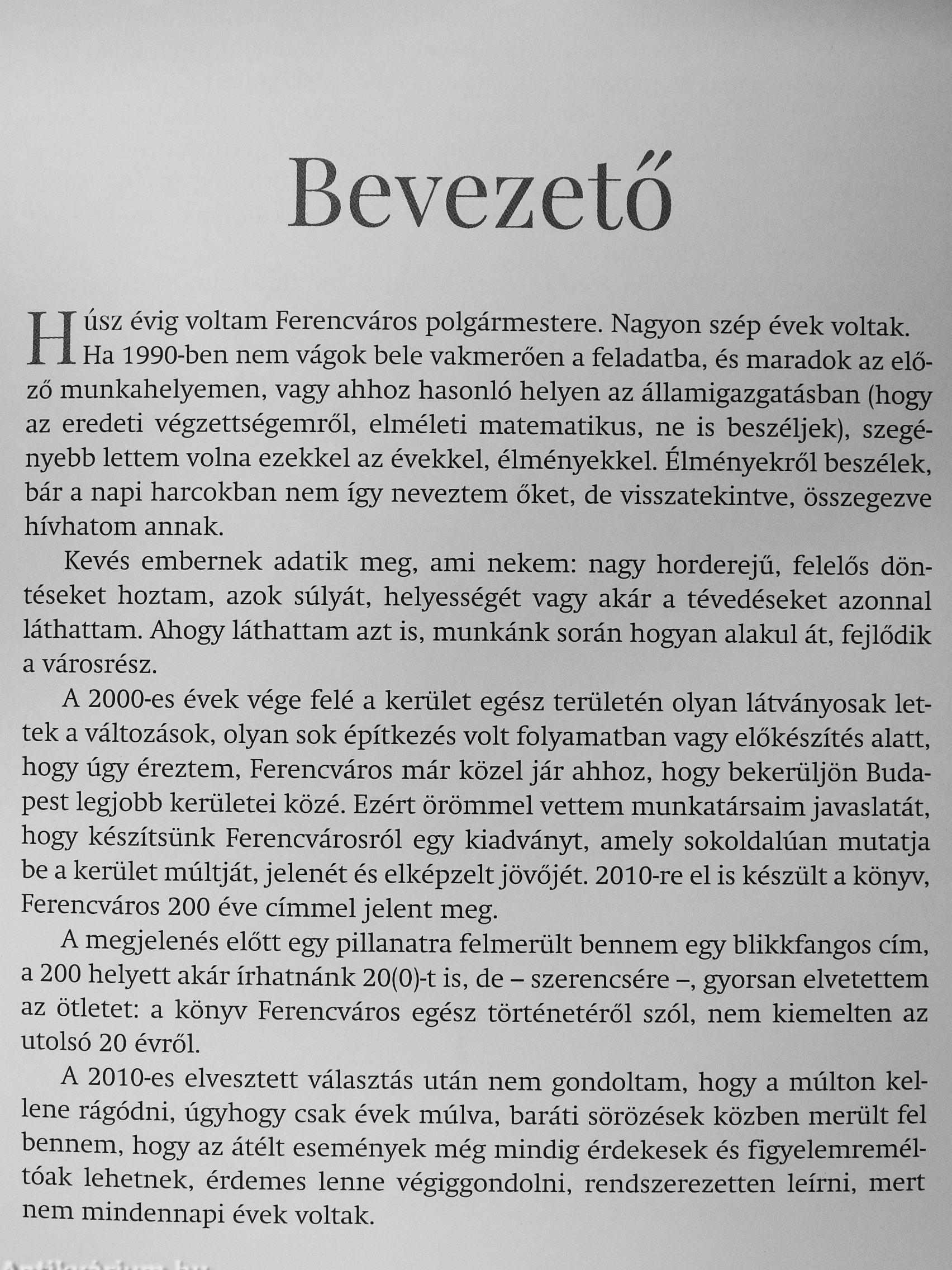 Dr. Gegesy Ferenc matematikus és közgazdász 1990-ben, neg5^enéves korában adta fel addig felépített szakmai karrierjét, hogy polgármester legyen a számára alig ismert Ferencvárosban. Öt cikluson, vagyis húsz éven át küzdött a városrész felemelkedéséért, az élhetőbb környezetért, emberibb lakásviszonyokért. igényes kultúráért. Nevéhez kötődik Ferencváros több nemzetközi díjjal elismert rehabilitációja. Könyvében ön/kritikusan értékeli ezt a történelmi korszakot, beleértve a „betanulás" idejét, és az olvasó számára is érthetően világítjá meg a döntések hátterét, a mindennapi háborúkat, küzdelmeit önös érdekek képviselőivel. Könyve záró fejezetében az eltelt húsz év politikáját vizsgálva elemzi milyen előzmények vezettek a jelenlegi állapotokhoz. Kritikus szemmel vizsgálja az önkormányzatiság jövőjét, kevéssé derűs képet rajzolva elénk. Vissza