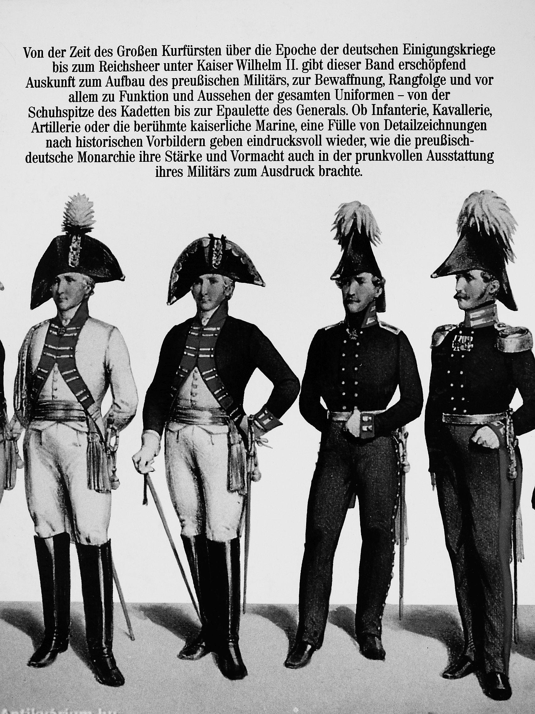 nach historischen Vorbildern geben eindrucksvoll wieder, wie die preußisch-deutsche Monarchie ihre Stärke und Vormacht auch in der prunkvollen Ausstattung ihres Müitärs zum Ausdruck brachte.