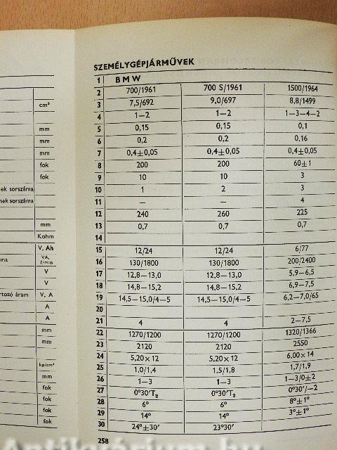 | A hazai forgalomban előforduló gépjárműtípusok diagnosztikai adatai | 257 |