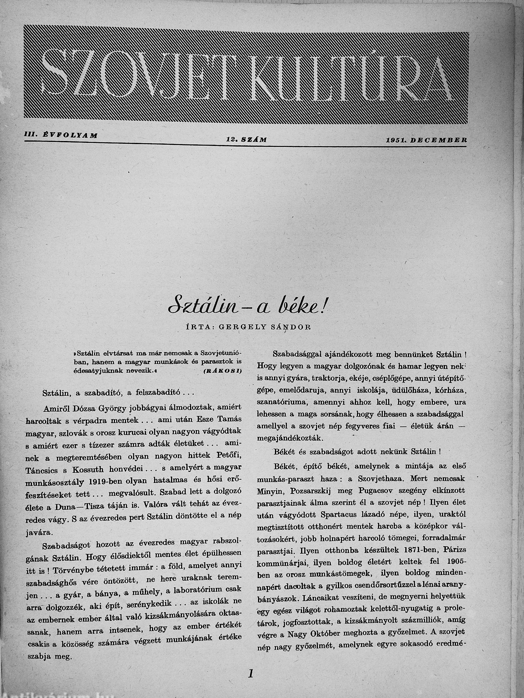 | Megjegyzés: | Nem teljes évfolyamok. Hiány: 1951/1-11., 1952. 7-10. és 12. szám. Fekete-fehér fotókkal. További kapcsolódó személyek a folyóiratban. |
