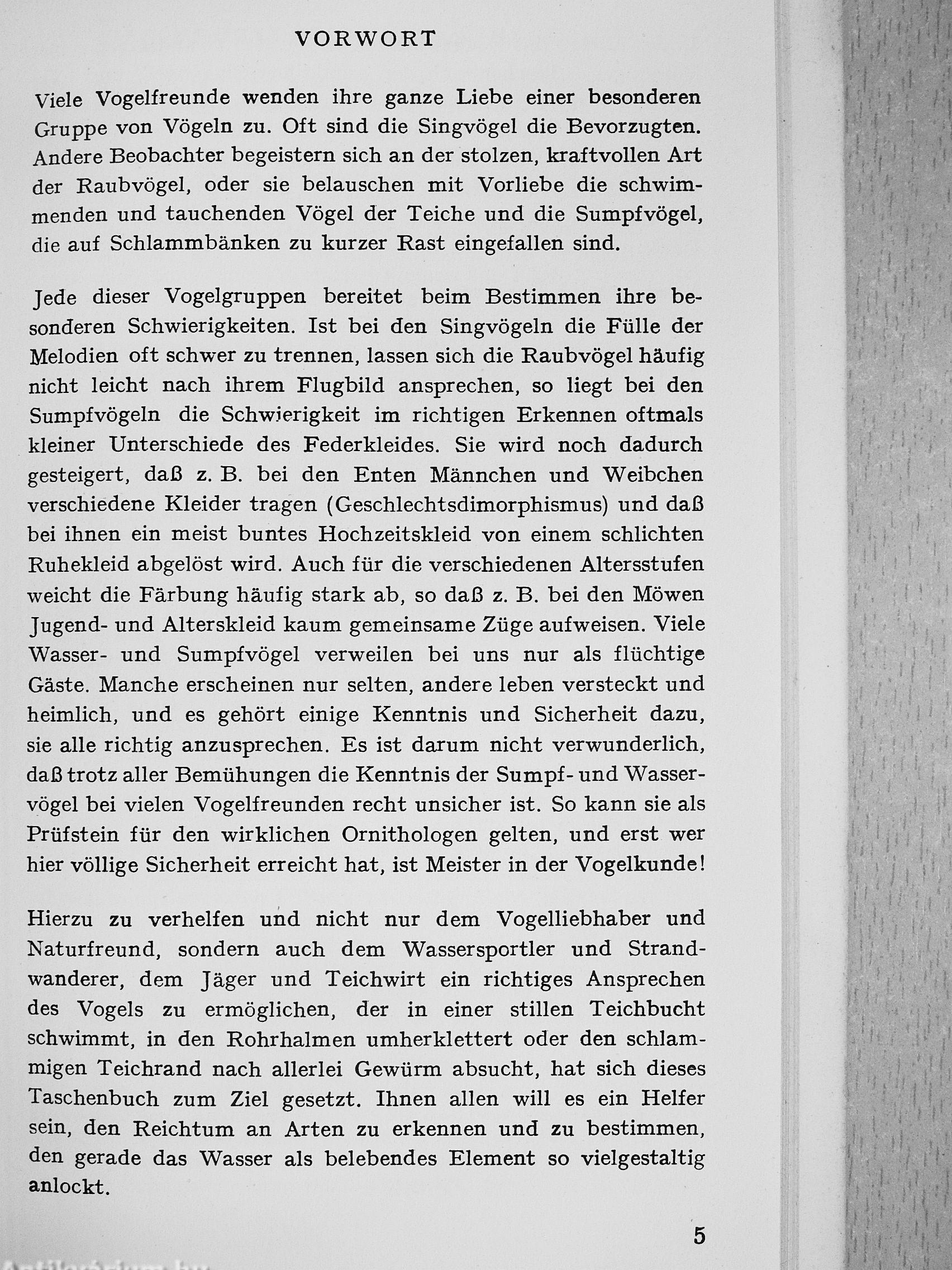 Jede Vogelgruppe bereitet beim Bestimmen besondere Schwierigkeiten. Bei Sumpf- und Wasservögeln sind sie wohl am größten, weil oftmals verschiedene, stark voneinander abweichende Kleider getragen werden. Viele Naturfreunde empfinden aber oft das Bedürfnis, die Vögel der Flüsse, Teiche und Sümpfe richtig anzusprechen. Ihnen allen will das Buch Helfer sein und ein sicheres Bestimmen ermöglichen. Auf 48 Farbtafeln sind die wichtigsten Arten in ihrem Lebensraum dargestellt. Der Text behandelt die Kennzeichen der einzelnen Vogelarten. In Bestimmungstabellen mit kleinen Skizzen wird der Feldornithologe die einzelnen Merkmale rasch herausfinden. Das Vogelleben im Jahreslauf und die Brutbiologie der Vögel werden in einem Überblick betrachtet. Eine Aufstellung über die Systematik, ein Verzeichnis unentbehrlicher Fachausdrücke und des wichtigsten Schrifttums sowie ein Vogelzugkalender vervollständigen dieses Nachschlagewerk. Durch sein handliches Taschenformat wird es wohl ebenso beliebt werden wie seine Vorgänger, die bereits zu ständigen Begleitern vieler Naturfreunde geworden sind.