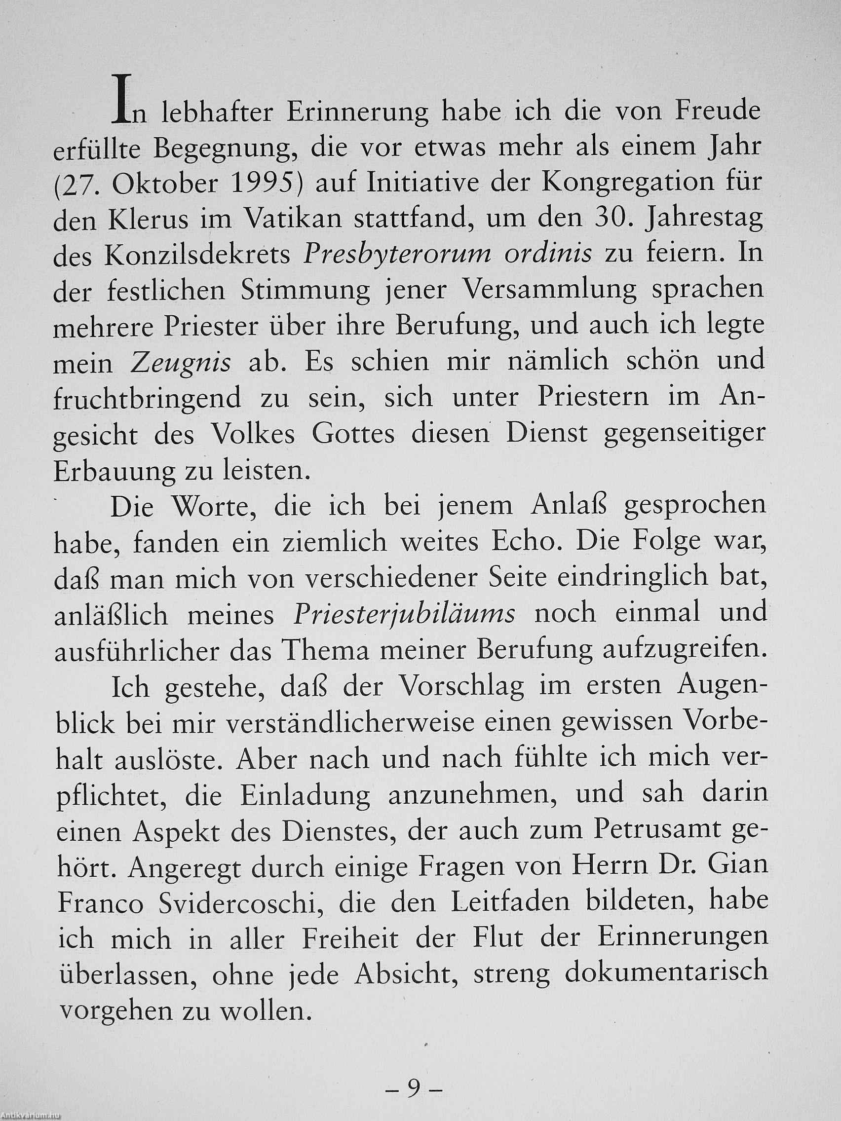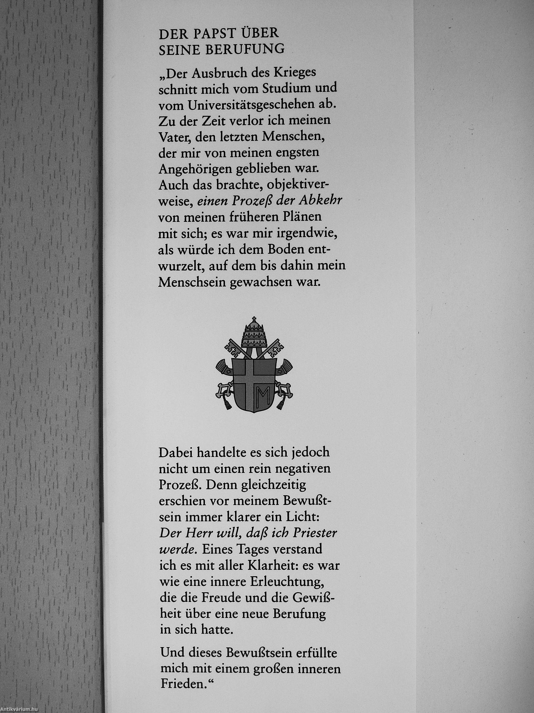 Dabei handelte es sich jedoch nicht um einen rein negativen Prozeß. Denn gleichzeitig erschien vor meinem Bewußtsein immer klarer ein Licht: Der Herr will, daß ich Priester werde. Eines Tages verstand ich es mit aller Klarheit: es war wie eine innere Erleuchtung, die die Freude und die Gewißheit über eine neue Berufung in sich hatte.