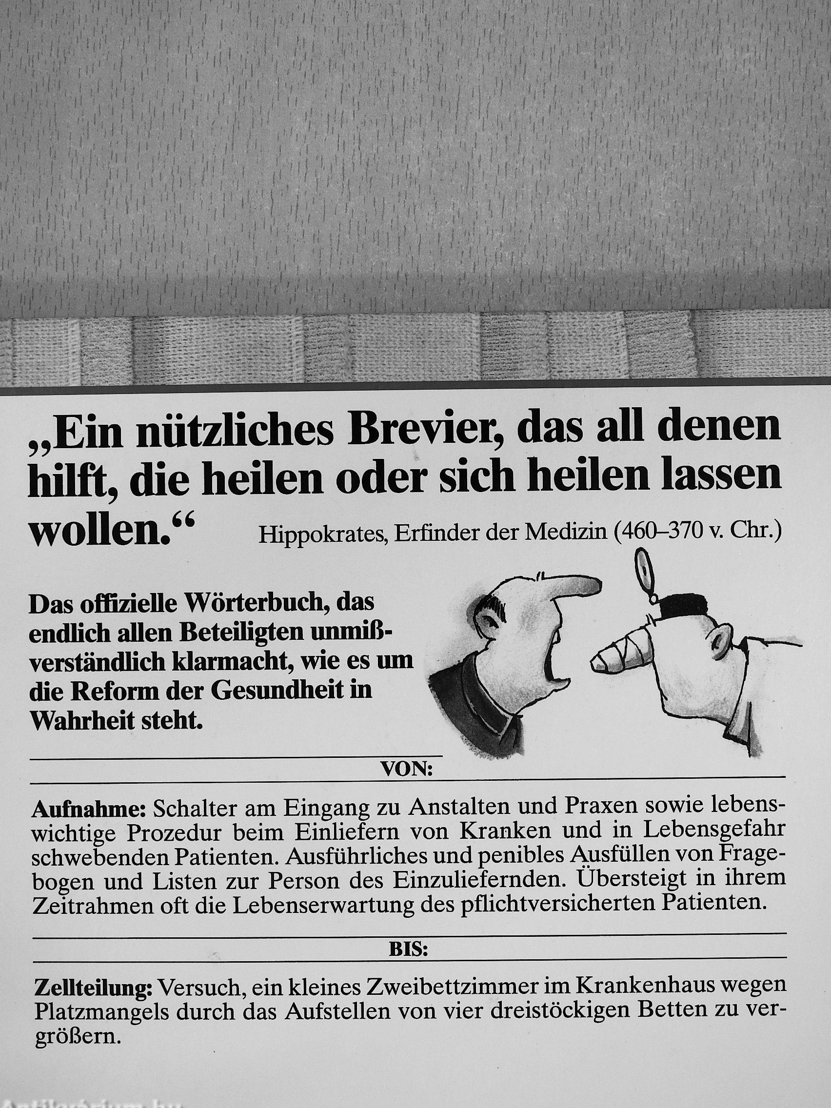Ein fröhliches Wörterbuch für Gesundmacher und Gesundstoßer, für Helfer, Heiler und Pfleger, gesunde Kranke, kranke Gesunde, gestreßte Politiker und Funktionäre sowie alle, die unter der Gesundheitsreform leiden