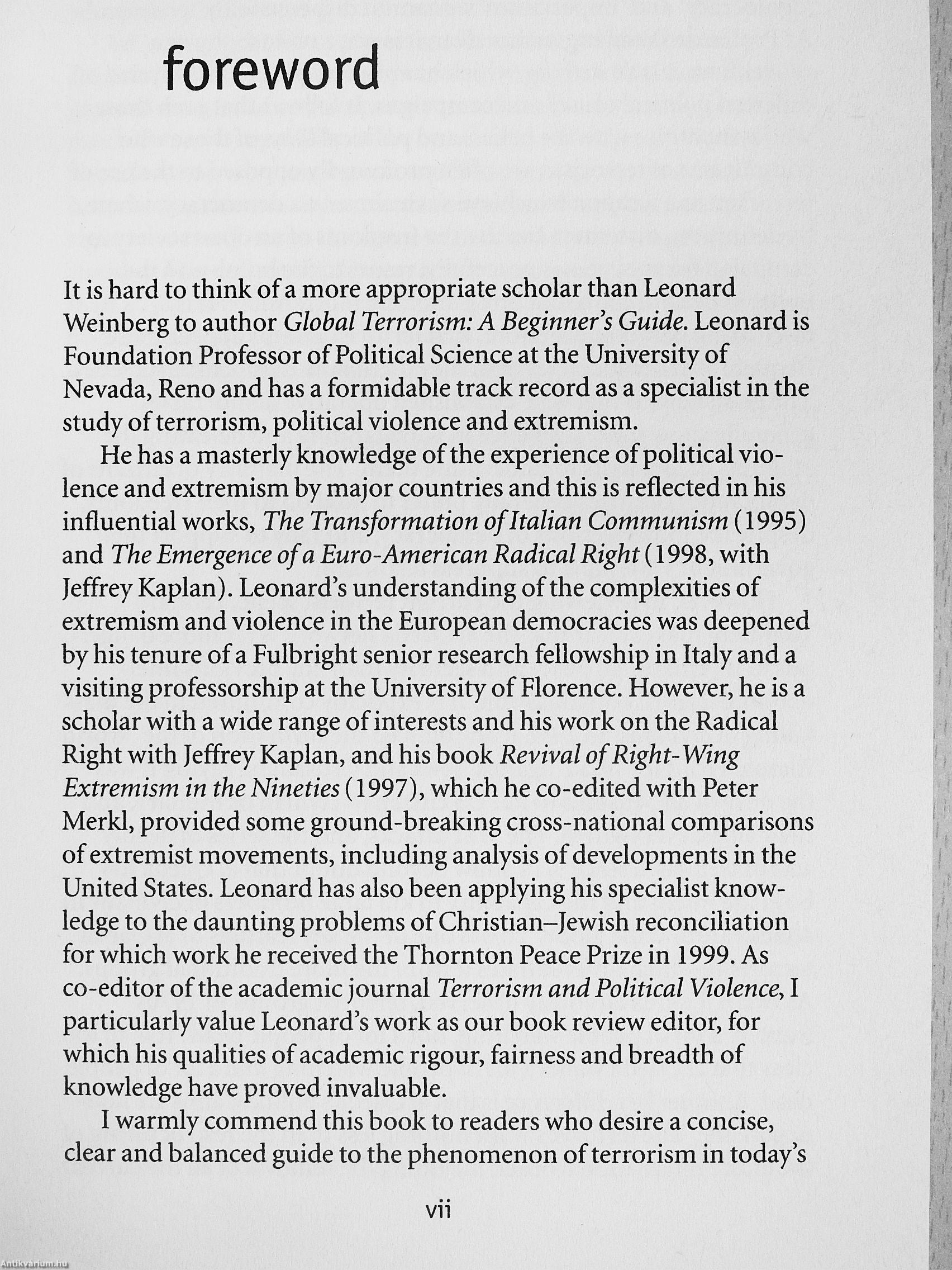 "I warmly commend this book to readers who desire a concise, clear and balanced guide to the phenomenon of terrorism."