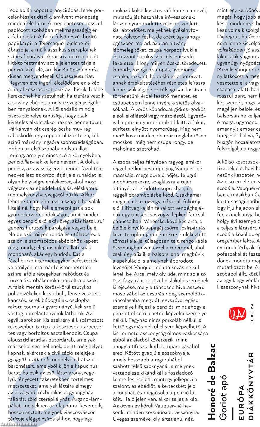Balzac maga nevezte regényének hősét, Goriot apót "az apaság krisztusának". A mű ma is úgy él a köztudatban, mint egy szenvedő, kiszolgáltatott, mártírumot vállalt apa története, a lányai által kisemmizett, őket mégis az utolsó pillanatig szerető öregember regénye.## A regény megértéséhez tudni kell, hogy a magára hagyott Goriot apót egyedül szánó, temetésén egyedül részt vevő Rastignac más Balzac-regényekben nagy karrieristaként szerepel, szalonok hőse, a legszebb nők kegyeltje, az élet igazi császára. Itt azok a vonásai állnak előtérben, amelyek megmagyarázhatják, hogy e talán legfontosabb balzaci hős miért egyúttal a leginkább komplex, jóból és rosszból legbonyolultabban "kikevert" alakja a szerző embergalériájának. Rastignac ugyanazon penzió lakója mint Goriot apó, éles szemmel hamar észreveszi azt is, hogy miért nem viszonozzák, miért nem viszonozhatják lányai apjuk szeretetét, milyen társadalmi - kötelező érvényű - mozgások irányítják még a legkisebb, legmeghittebb sejt, a család belvilágát is. Ugyancsak a penzió minuciózus leírásából kapunk először képet arról a Párizsról, amely a további darabok legfőbb színhelye, a "nagy" társadalomnak mintegy szimbóluma lesz.## A regény vége, utolsó jelenete a világ regényirodalmának legtávlatosabb, legsejtelmesebb zárásai közé tartozik: Goriot apót eltemetve egy egész világ temetődik el. Rastignac híres szavai a temető hegyéről látható esti Párizshoz: "Most mirajtunk a sor!" - nemcsak saját pályája további küzdelmeit jelzik, nemcsak kihívást jelentenek, de új világok születésének próféciáját is.