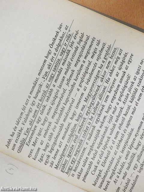 Még valami. A könyvvel kapcsolatosan sokféle kritikát elfogadok, egyet azonban nem. Vitába szállok mindazokkal, akik megkérdőjelezik a grafológia létjogosultságát. A most következő oldalakon is több alkalommal próbálom majd meggyőzni őket. Ha végül mégsem sikerülne...? Nos, hát akkor váljunk el úgy egymástól, hogy mindenki megőrzi a saját meggyőződését. De harag azért nincs!
