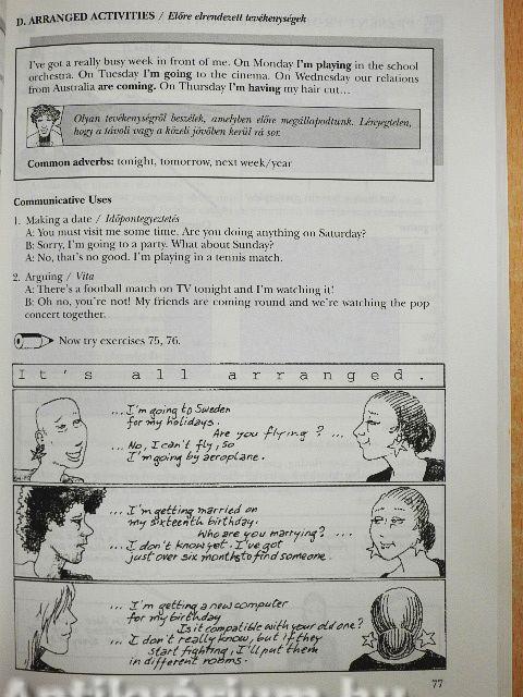 - a "Communicative Uses" táblázatokban olyan helyzeteket, alkalmazásokat mutat be, amelyek jellemzőek az adott nyelvtani jelenségre