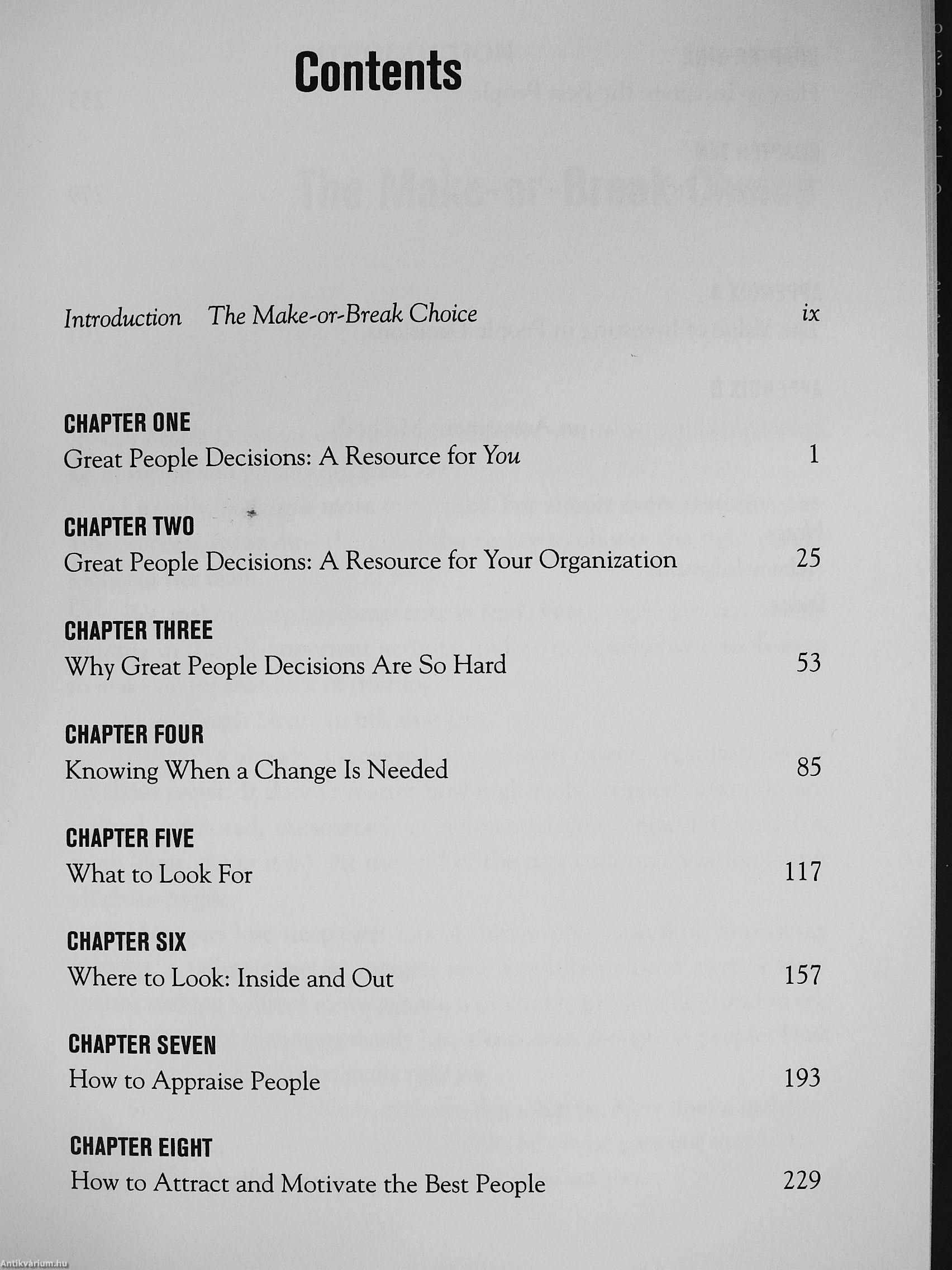 looking for the next CEO? A manager who needs to fill a critical slot in the middle ranks of your division? Great People Decisions is for you. It tells you how to know when a change is needed, what to look for, where to look—inside and outside your own ranks— how to appraise people, and how to persuade them to join and stay with your organization.