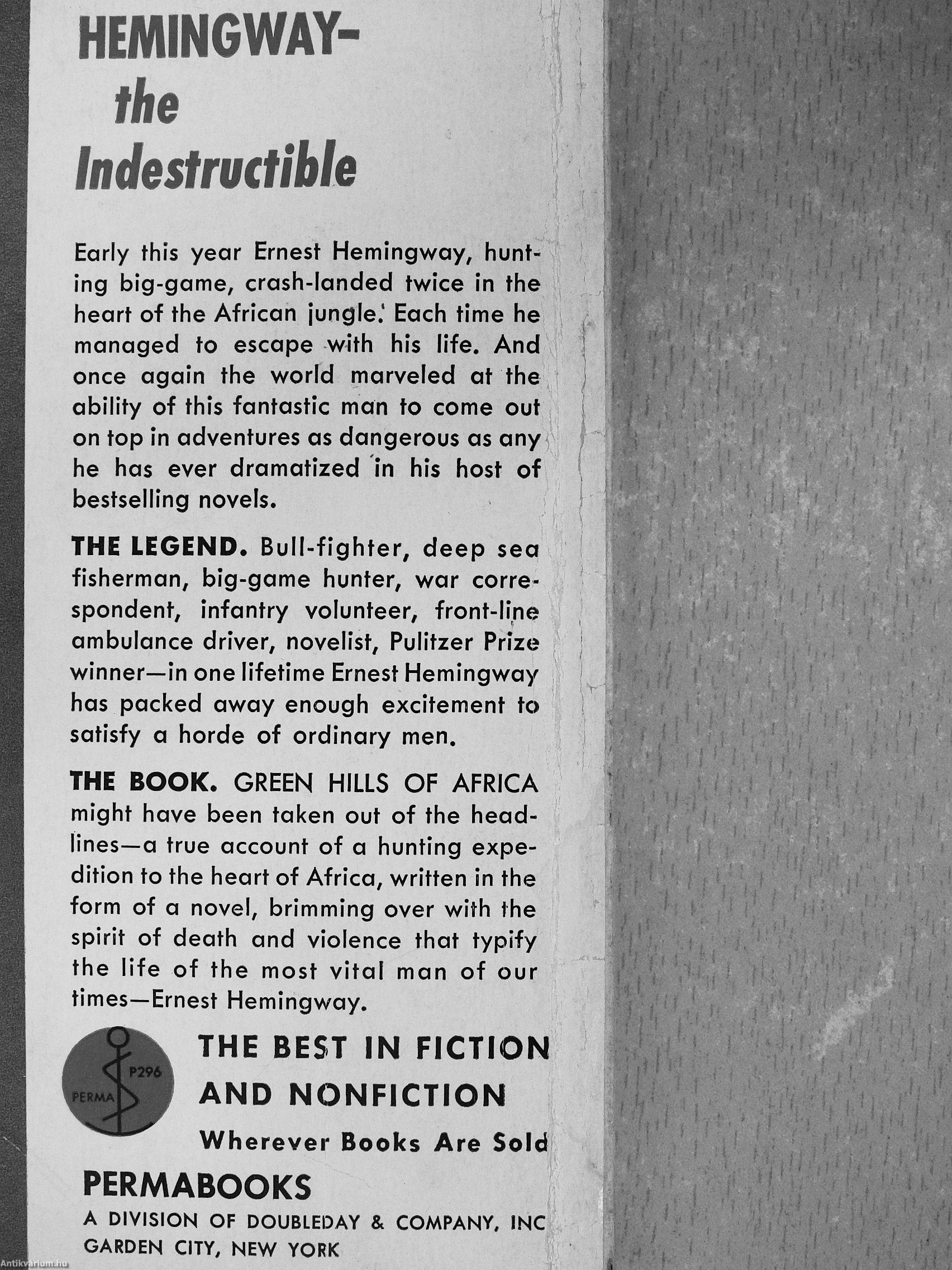 THE BOOK. GREEN HILLS OF AFRICA might have been taken out of the headlines—a true account of a hunting expedition to the heart of Africa, written in the form of a novel, brimming over with the spirit of death and violence that typify the life of the most vital man of our times—Ernest Hemingway.