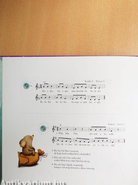A zeneszerzők köpött: Kodály Zoltán, Szönyi Erzsébet, Adám 7enó', a sz.0vegírók sorában pedig Weöres Sándor, Gazdag.Erzsi és Csukás István neve' szerepel. A gyűjteményben a kompönált-gyerekdalók rriellett más_^népek dalaival "is talá|kozunk.