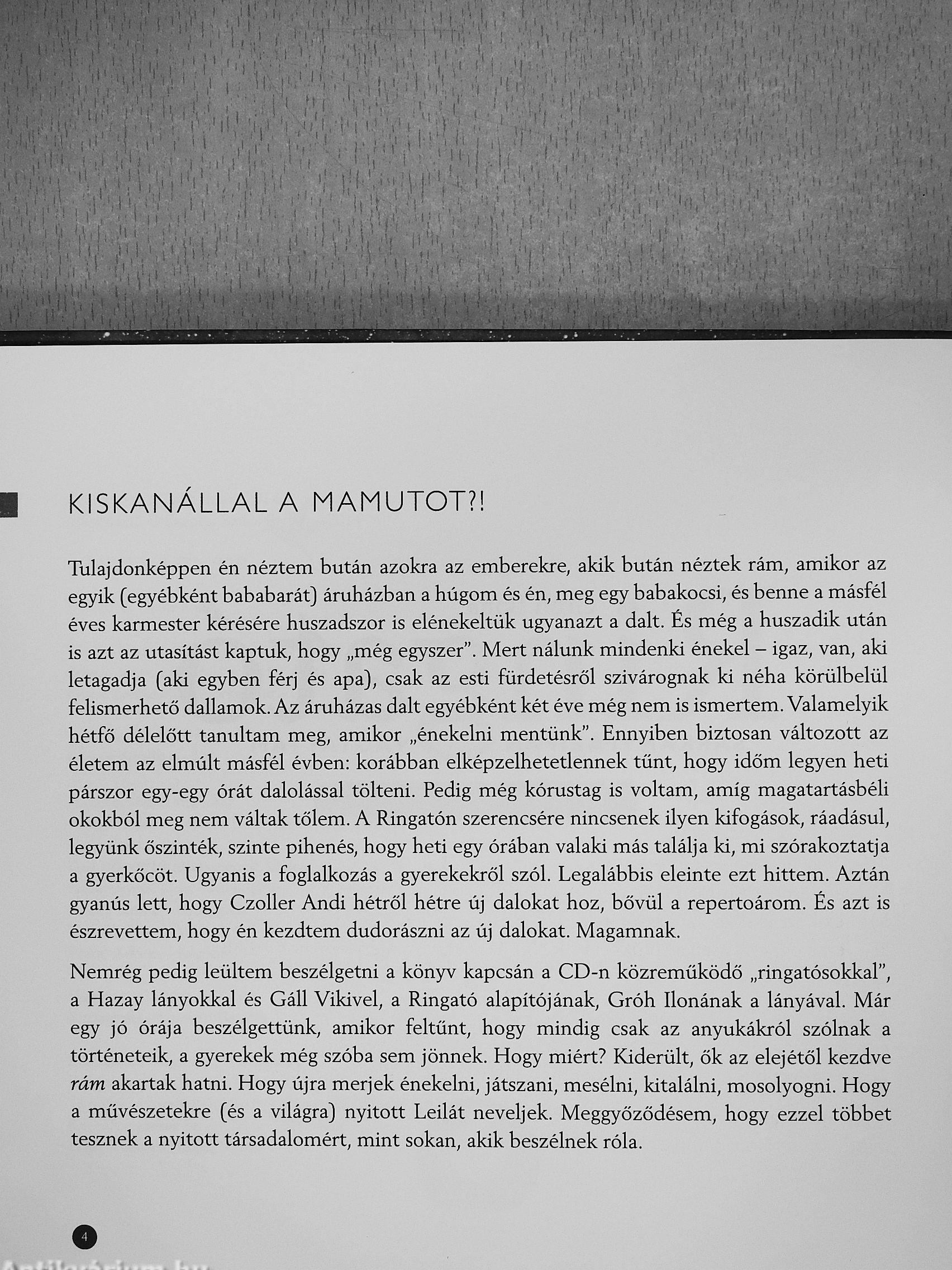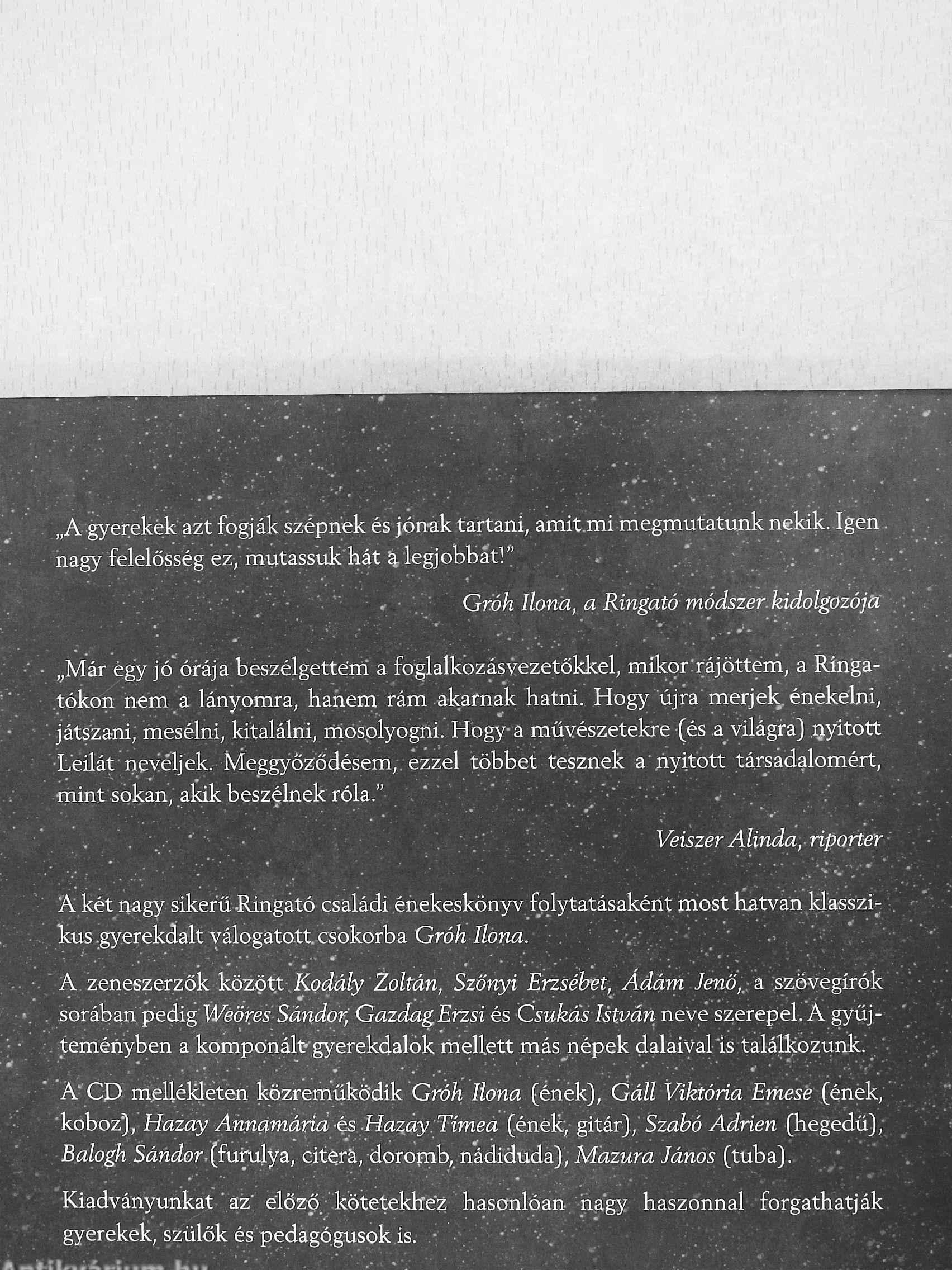 A két nagy sikerű-Ringató családi énekeskönyv folytatásaként most hatvan klasszig kus .gyerekáalt válogatott csokorba Gró/i íZona. ¦.¦.-• ¦ . ' '