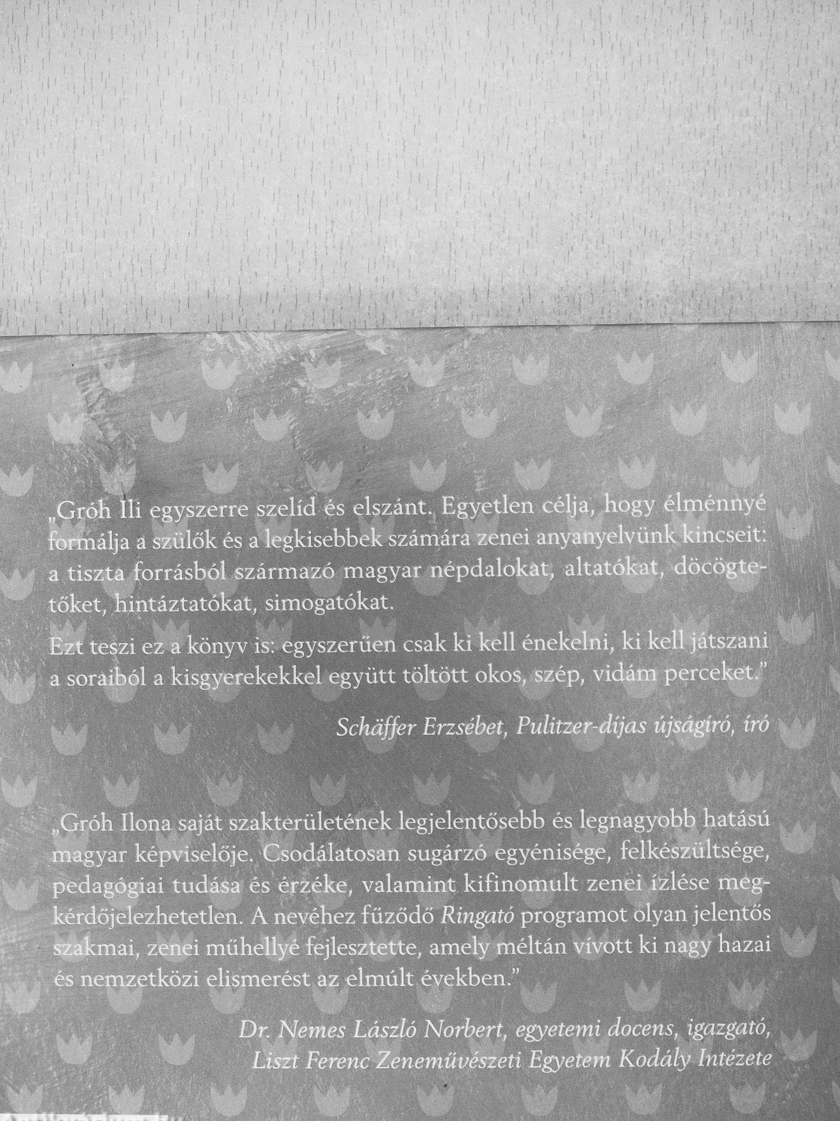 „Gróh Ili egyszerre szelíd és elszánt. Egyetlen célja, hogy élménnyé fortnálja a szülök és a legkisebbek számára zenei anyanyelvünk kincseit: a tiszta forrásból származó magyar népdalokat, altatókat, döcögte-tőket, hintáztatókat, simogatókat.