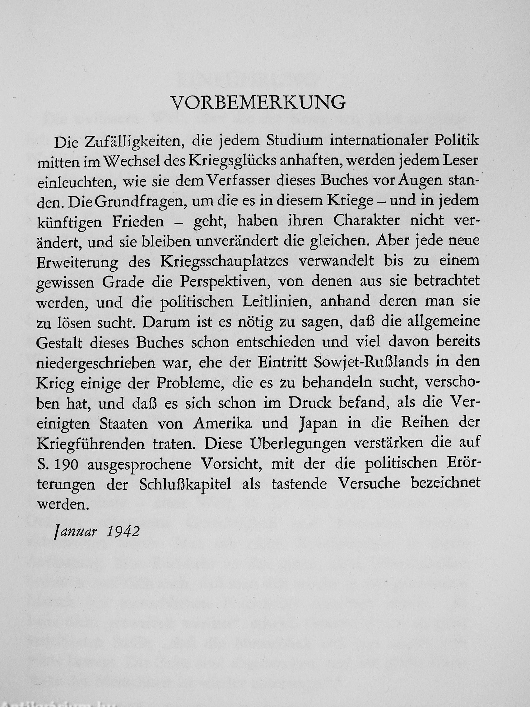 Ez utóbbi munkájában Carr egy új sajátságos gondolkodásmódot mutat be. A szerző a tartós béke feltételeivel és a háború utáni problémákkal foglalkozik.