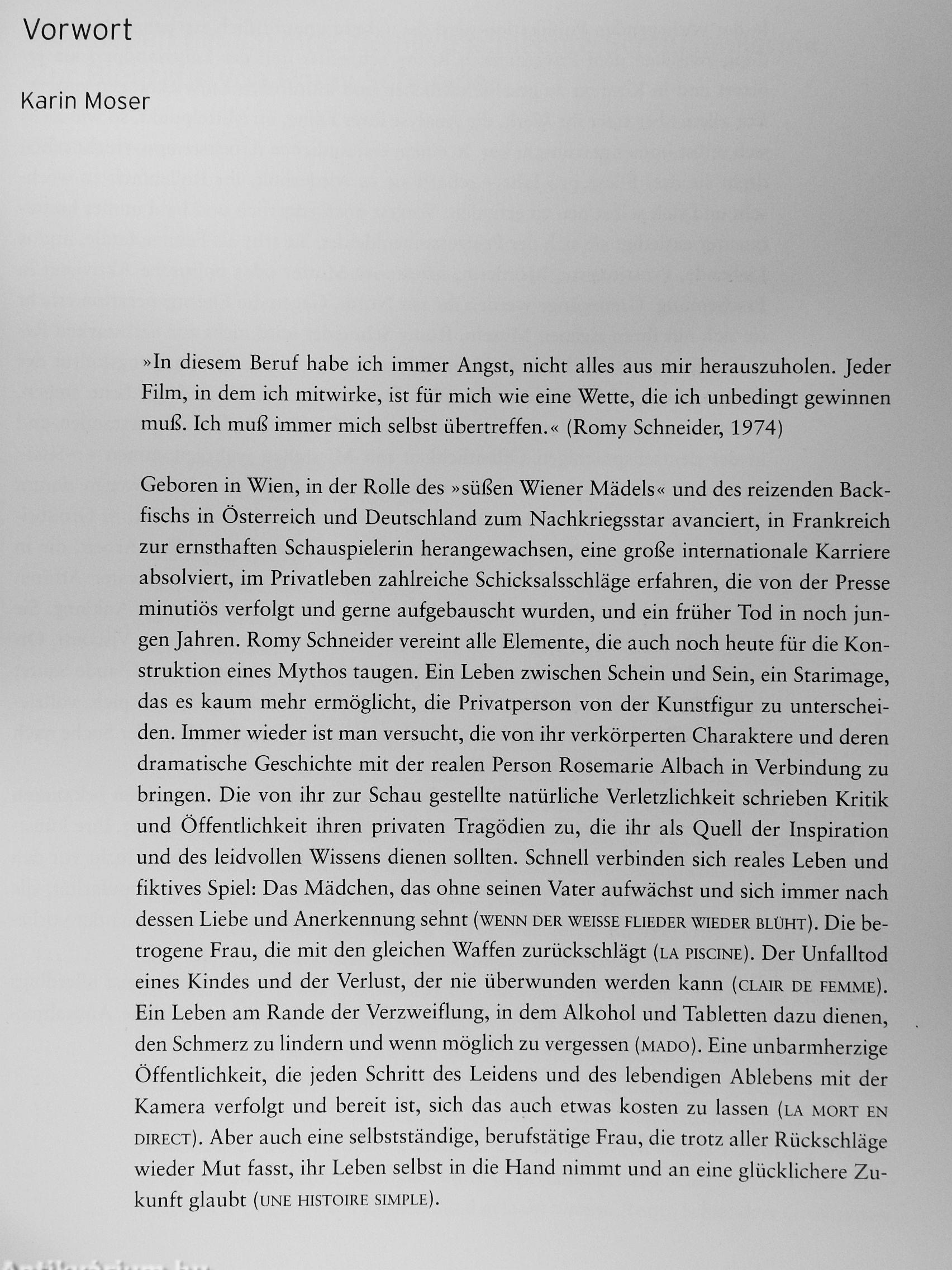 Romy Schneider wird als Star dreier Nationen gef6|^ri in Österreich und Deutschland immer noch als Sissi verehrt, wurde sie in Frankreich,zur größten Schauspielerin des 20. Jahrhunderts gekürt. In über 60 Film; ynd Fern?Wiarbeiten hat Rosemarie Albach (so ihr bürgerlicher Name) sich immer* wiedö^.?selbst nfeli erfunden. Langsam, aber konsequent emanzipierte sie sich von der RöWe'äer ewigen Prinzessin - das Jungmädchenidol der Nachkriegsära mutierte zur erotisch kühlen und selbstbewussten Frau. Grenzüberschreitungen