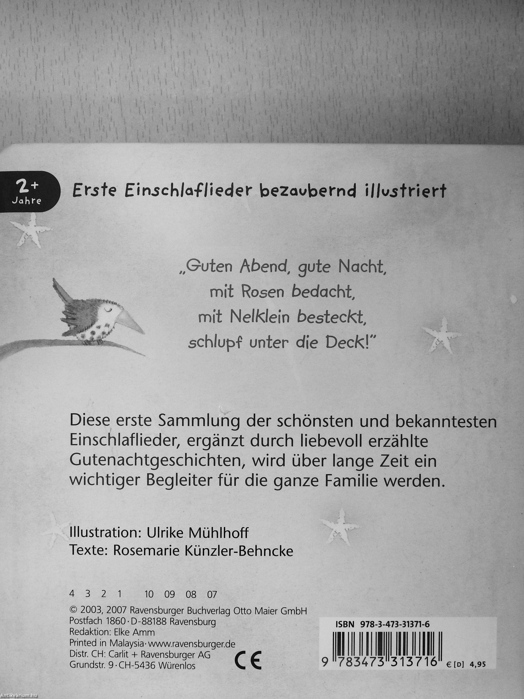 .Guten Abend, gute Nacht, mit Rosen bedacht, mit NelWein besteckt, schlupf unter die Deck!"