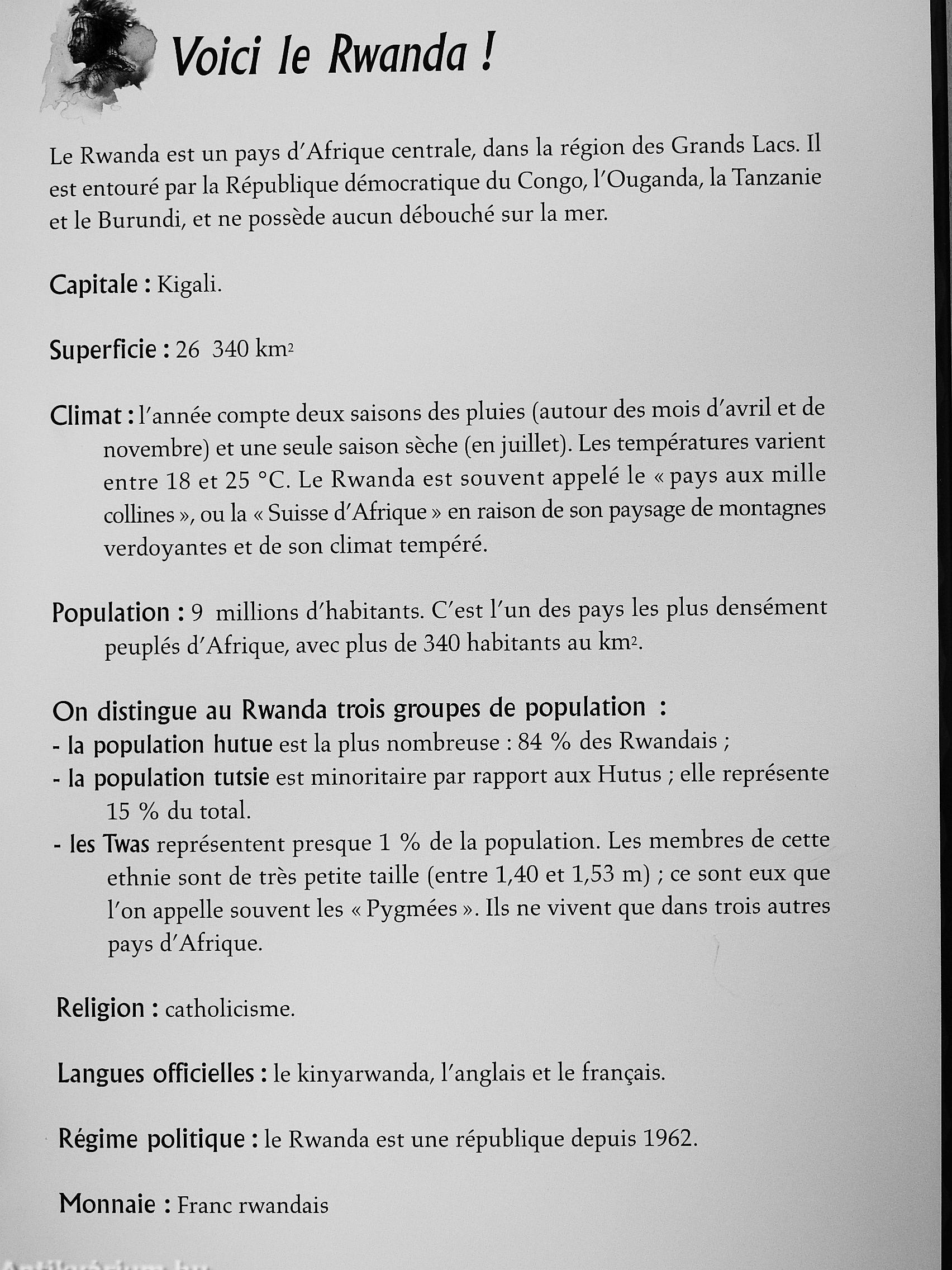 Ori surnomme le Rwanda le « pays des mille collines ». Il est situé au cour de l'Afrique, et compte parmi les plus densément peuplés au monde. Le Rwanda est surtout connu pour le génocide des Tutsis par les Hutus, en 1994, mais depuis, la population a choisi de regarder vers l'avenir Le Rwanda est un pays qui vit a nouveau et se reconstruit.