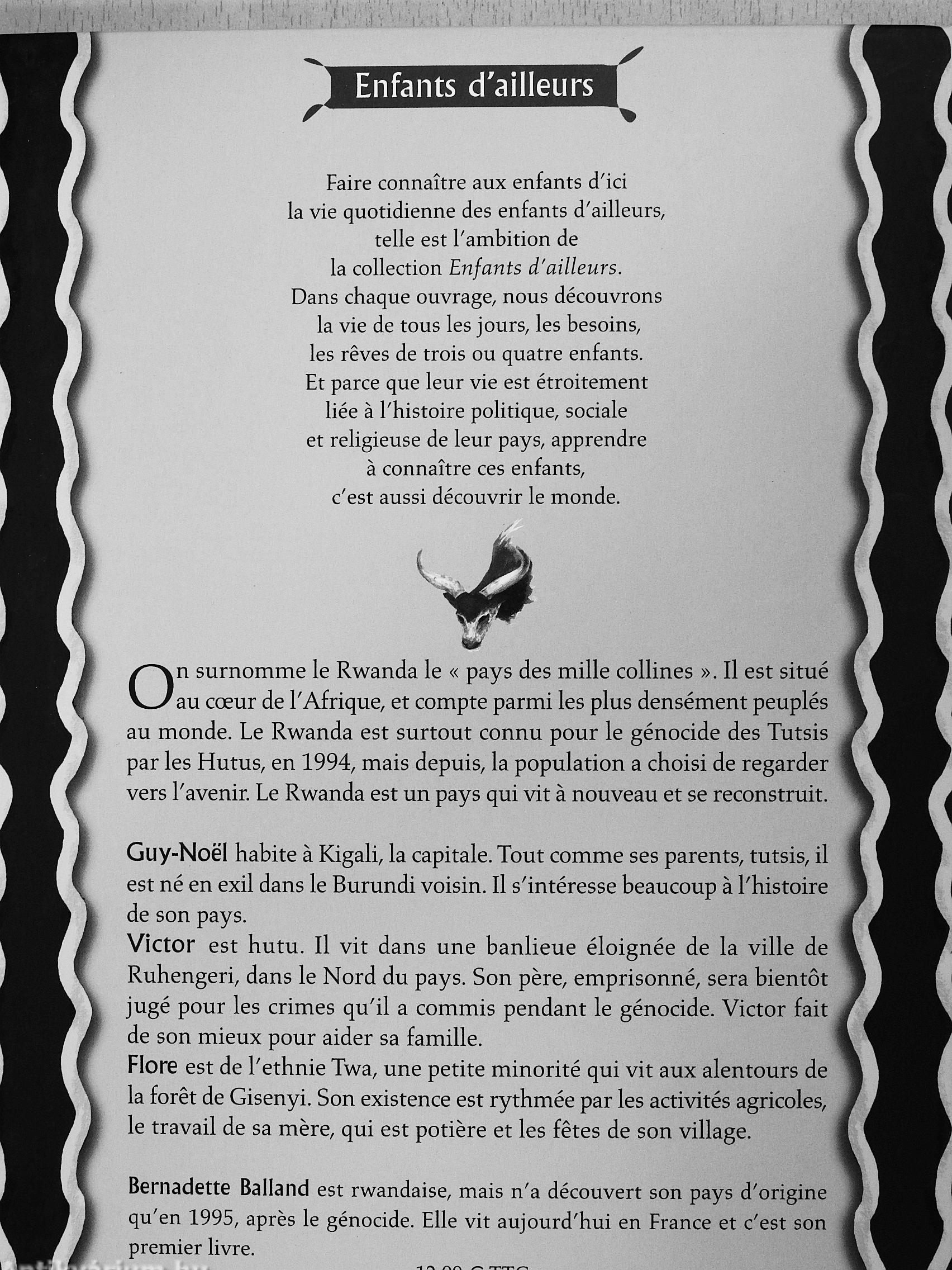 Bernadette Balland est rwandaise, mais n'a découvert son pays d'origine qu'en 1995, apres le génocide. Elle vit aujourd'hui en France et c'est son premier livre.