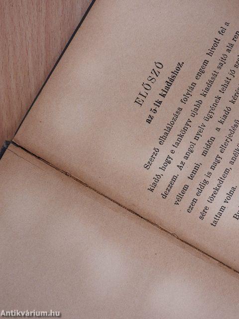 | Megjegyzés: | Hatodik, javított kiadás. Nyomatott Wodianer F. és Fiainál, Budapesten. Írta Dallos Gyula, egyetemi magántanár, a berlini városi hatóság volt hites tolmácsa, a bécsi "English Conversations-club" tiszt. tagja stb. |