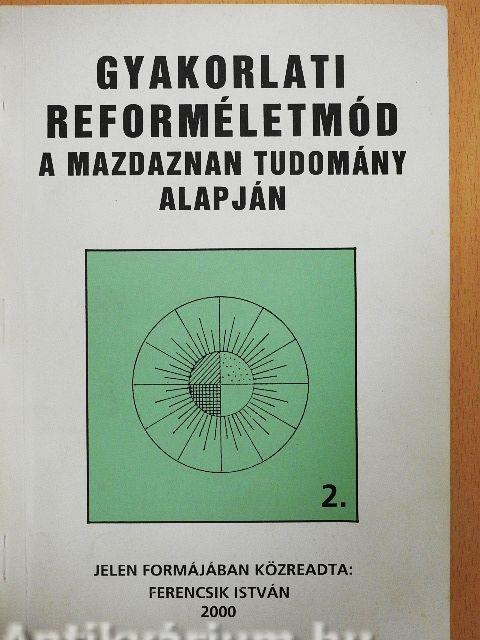 Mivel az előző, 1996-ban megjelent "GYAKORLATI REFORMÉLETMÓD A MAZDAZNAN TUDOMÁNY ALAPJÁN" c. könyvemhez sokan már hozzáfértek és megértették, hogy a MAZDAZNAN tanítások egyértelműen az egyén és az emberiség felemelkedését, fejlődését szolgálják, közreadom most annak egy másik fejezetét, amelynek anyagát javarészét Dr.O.Z.A.HANISH-nak, a MAZDAZNAN alapító Mesterének, Csikágói Egyetem professzorának tanításai adják. Kérem kisérjék ugyanolyan figyelemmel, mint az első kötetet, amely főképpen a gyakorlatban megvalósítandó és megvalósítható tennivalókkal foglalkozik, havi bontásban. Ily módon az évszakoknak legjobban megfelelő táplálkozási légzési és testápolási (TLM), valamint betegségmegelőző és elhárító tanácsokat tartalmazza.