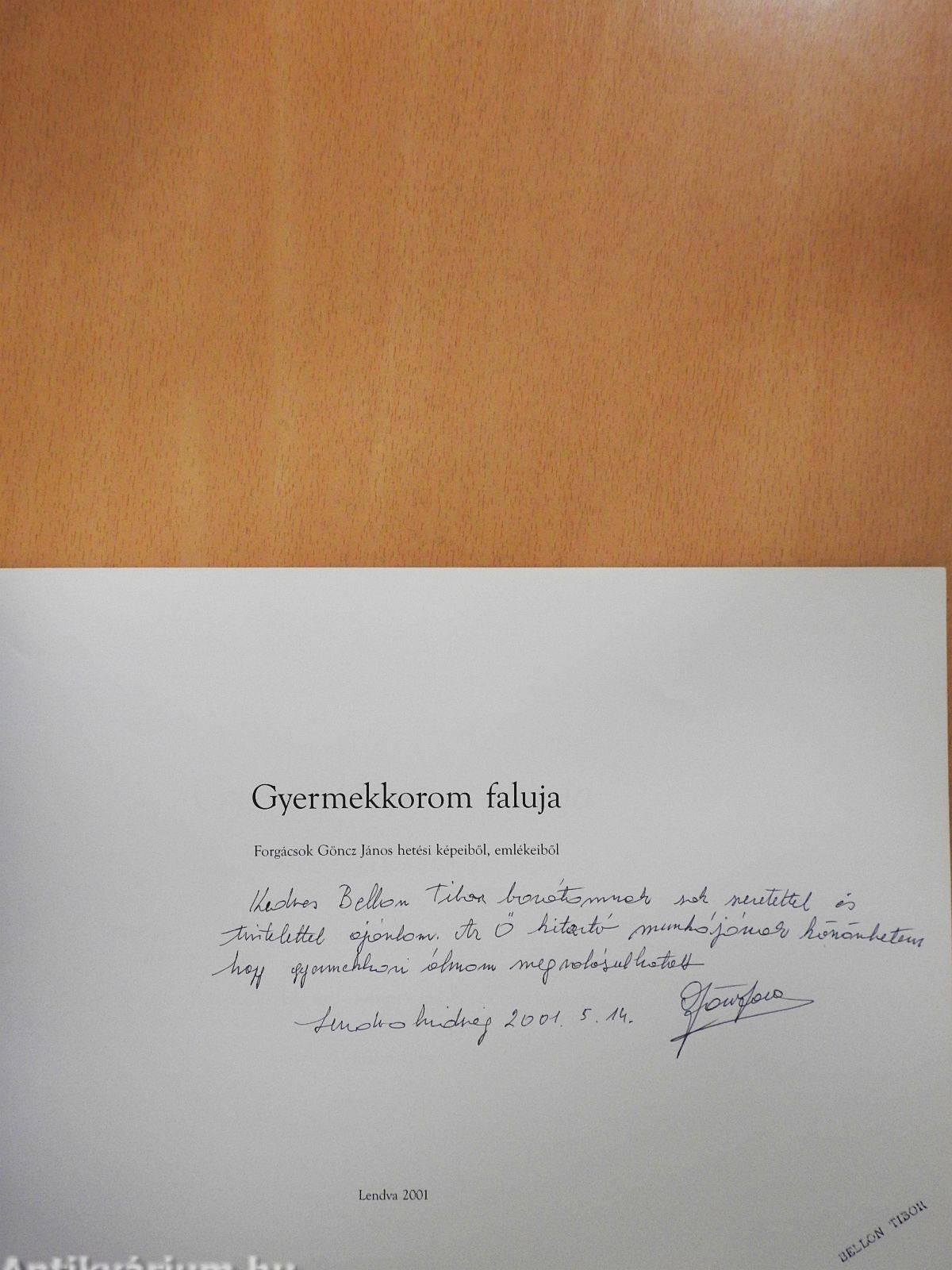 | Megjegyzés: | Göncz János grafikus által dedikált példány. Színes reprodukciókkal. |