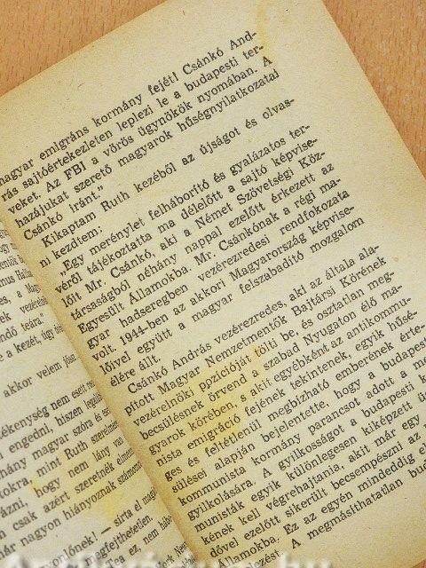 Kása Bertalan szerszámkészítő az ellenforradalom idején kalandokra vágyva nekivág a nagyvilágnak. Hosszas bolyongás után végül is New Yorkban köt ki. Itt az egyik óragyárban kap munkát: a kallantyúkat kell felcsavarnia a vekkerekre. Unalmas foglalatosság ez, de ő vigasztalja magát, hogy mégiscsak megél belőle, és rá se hederít az egészre, ha Ruth-tal, a fekete hajú, kékszemű pincérlánnyal töltheti idejét. Már-már Ruth beleegyezik, hogy az övé lesz, de ekkor váratlan fordulatok következnek be Kása Bertalan életében. Ezeket a viszontagságokat meséli el Pintér István új kalandregénye. A rendkívül könnyed, gunyoros-szatirikus hangvételű írás nemcsak az Amerikában élő "egyetlen" magyar "kormányfők" nevetséges üzelmeit gúnyolja ki, hanem az FBI-t és a CIÁ-t is. De nem kegyelmez Kásának meg Ruth-nak sem. Bár velük szemben elnézőbb. Kása Bertalan végül is hazakerül; boldogan él itthon a feleségével, és kéri az olvasót, hogy el ne árulják feleségének Ruth-ot.