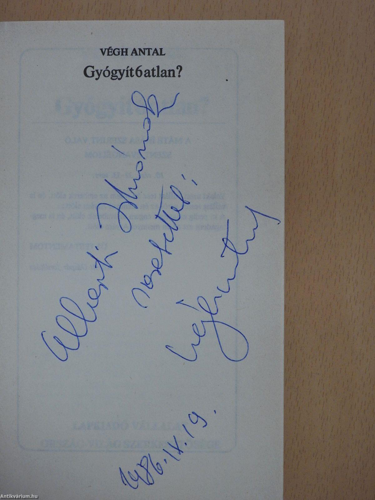 | Megjegyzés: | Végh Antal szerző által dedikált példány. |