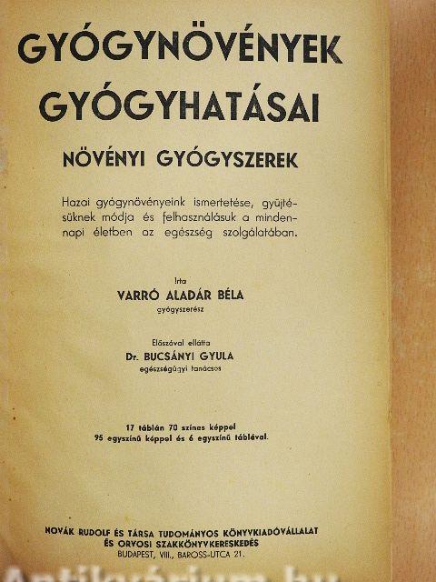| Megjegyzés: | 17 táblán 70 színes képpel, 95 egyszínű képpel és 6 egyszínű táblával illusztrálva. Hajnal László grafikus művészi kivitelű rajzaival. A színes műmellékletek a Globus nyomda műintézetében készültek. Írta: Varró Aladár Béla gyógyszerész. Előszóval ellátta Dr. Bucsányi Gyula egészségügyi tanácsos. Gyarmati és Bősz nyomda, Bp. nyomása. |