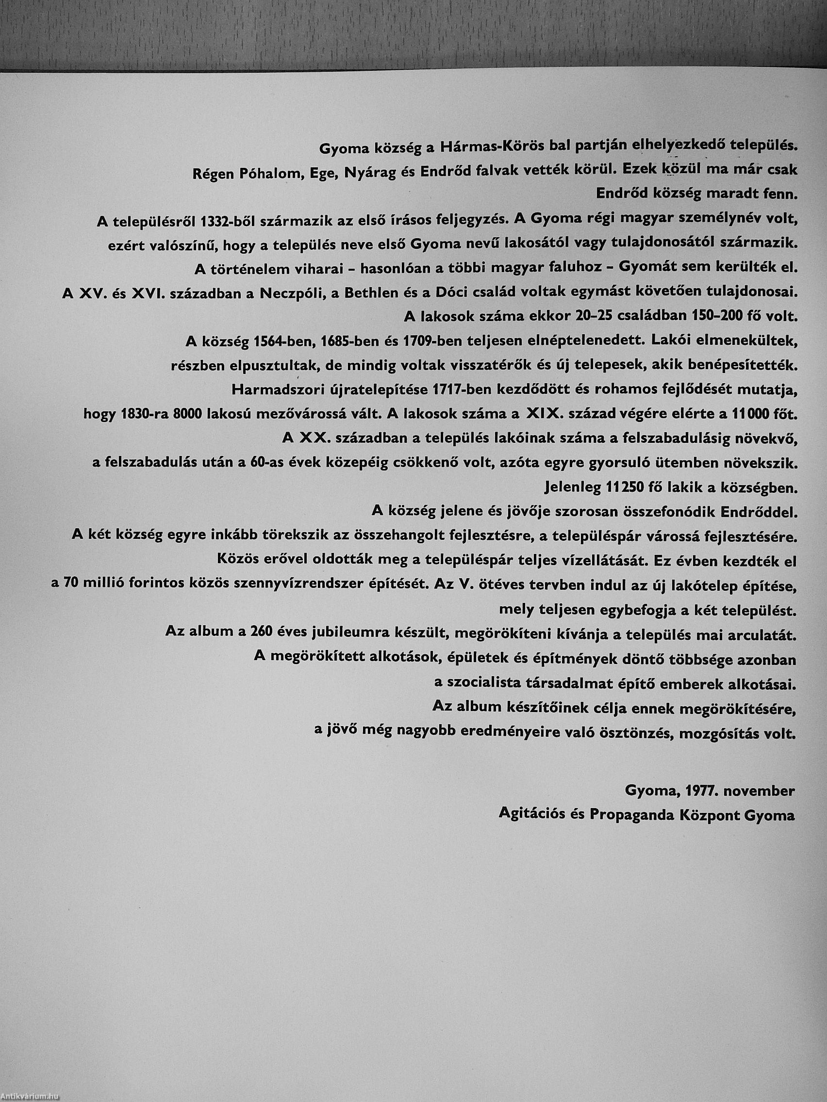 1717-1977/Képek a 260 éve újratelepített Gyoma nagyközségről