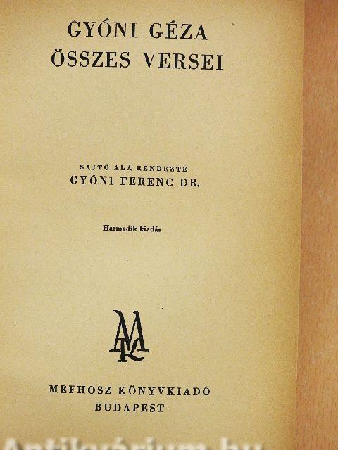 | SZOMORÚ SZEMMEL. (1909.) Előfiz. felhívás (febr.) útján való gyűjtés és a szarvasi nagybácsitól örökölt (s G. nagykorúságával esedékes) részvények ára tette lehetővé a köt. megjelenését. 1904-től 1909 elejéig írt verseiből válogatta össze. A köt. érzelmi története, múzsái és érdeklődési körei tekintetében ld. az Életr. táj.-t (1904-9). Az ismertetések könyvészetét ld. Guly.-ban. | |