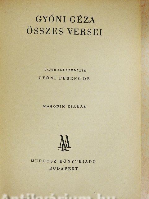 | SZOMORÚ SZEMMEL. (1909.) Előfiz. felhívás (febr.) útján való gyűjtés és a szarvasi nagybácsitól örökölt (s G. nagykorúságával esedékes) részvények ára tette lehetővé a köt. megjelenését. 1904-től 1909 elejéig írt verseiből válogatta össze. A köt. érzelmi története, múzsái és érdeklődési körei tekintetében ld. az Életr. táj.-t (1904-9). Az ismertetések könyvészetét ld. Guly.-ban. | |