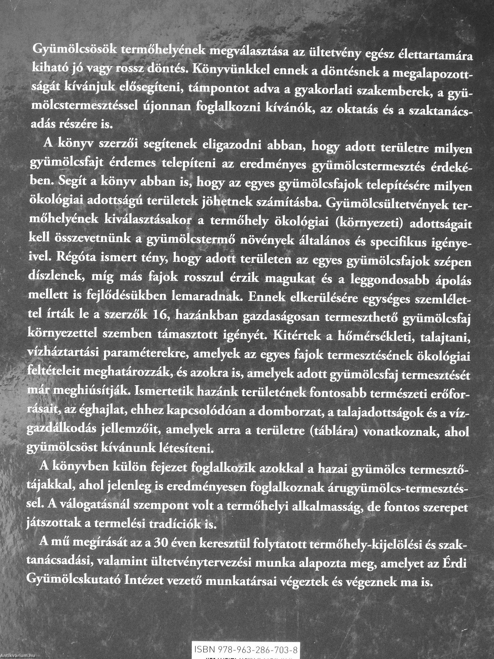 Gyümölcsösök termőhelyének megválasztása az ültetvény egész élettartamára kiható jó vagy rossz döntés. Könyvünkkel ennek a döntésnek a megalapozottságát kívánjuk elősegíteni, támpontot adva a gyakorlati ssuikemberek, a gyümölcstermesztéssel újonnan foglalkozni kívánók, az oktatás és a szaktanácsadás részére is. ^