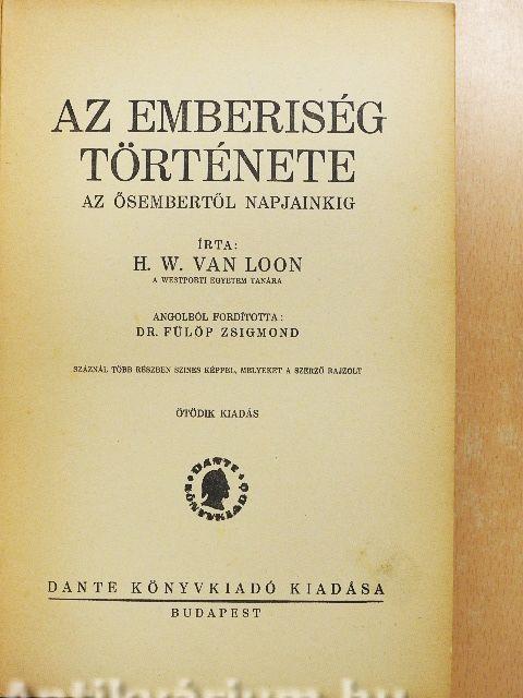 Megjegyzés: Ötödik kiadás. Száznál több részben szines képpel, melyeket a szerző rajzolt. Írta: H. W. Van Loon a Westporti Egyetem tanára. Angolból fordította: Dr. Fülöp Zsigmond.