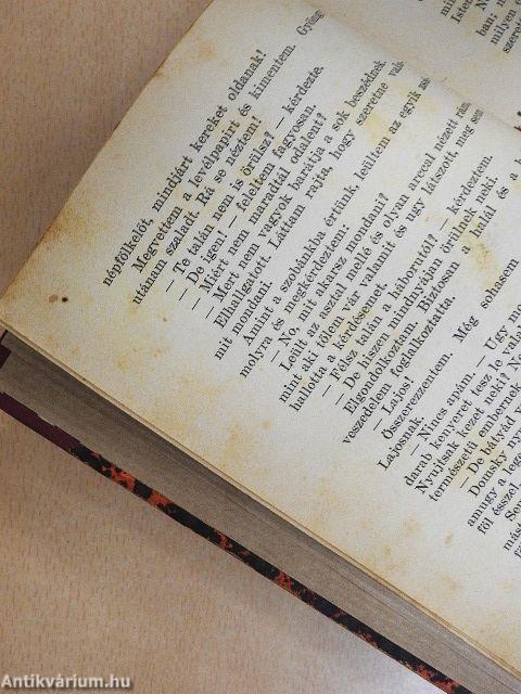 A borító kopott, a lapélek és több lap foltos. Könyvtári könyv volt.