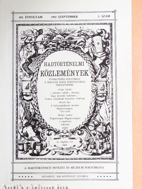 Hadtörténelmi Közlemények 1992. szeptember Hadtörténelmi Közlemények 1992. szeptember