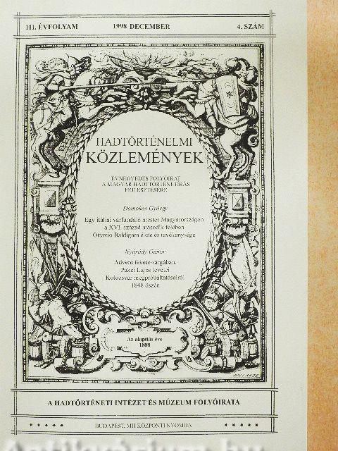 Hadtörténelmi Közlemények 1998. december