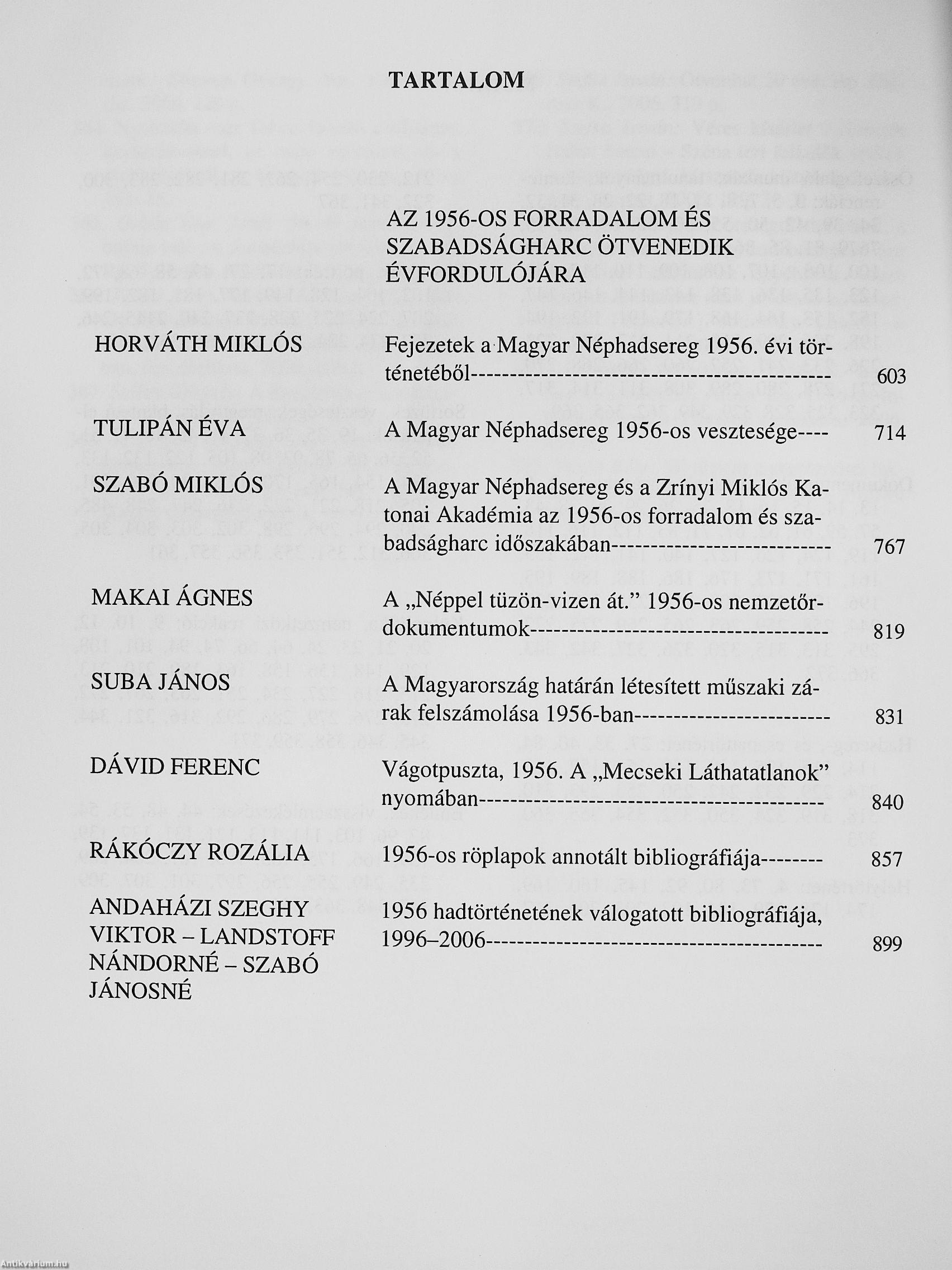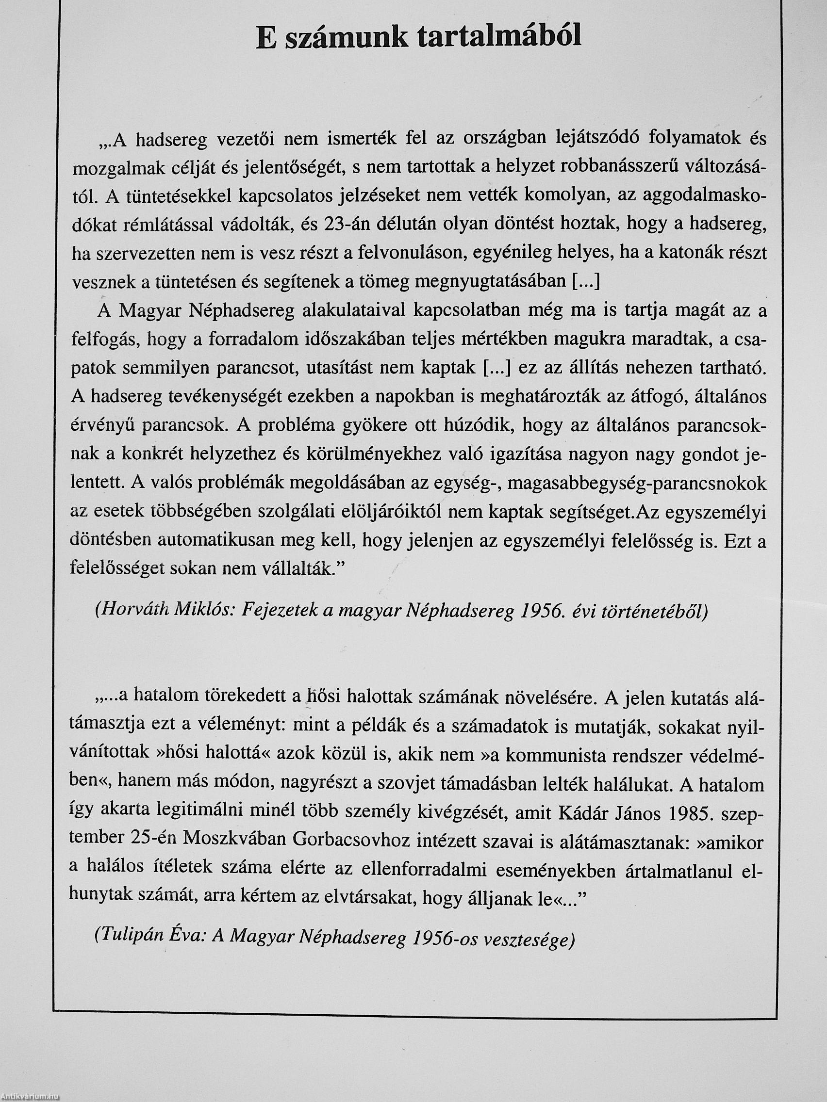 (Tulipán Éva: A Magyar Néphadsereg 1956-os vesztesége) Vissza