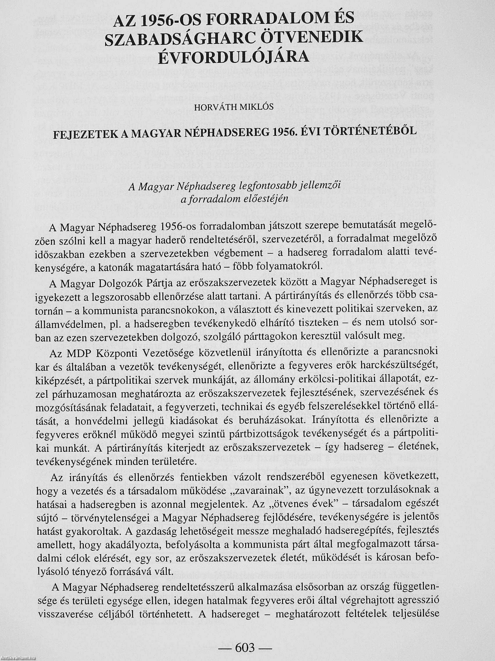 (Horváth Miklós: Fejezetek a magyar Néphadsereg 1956. évi történetéből)