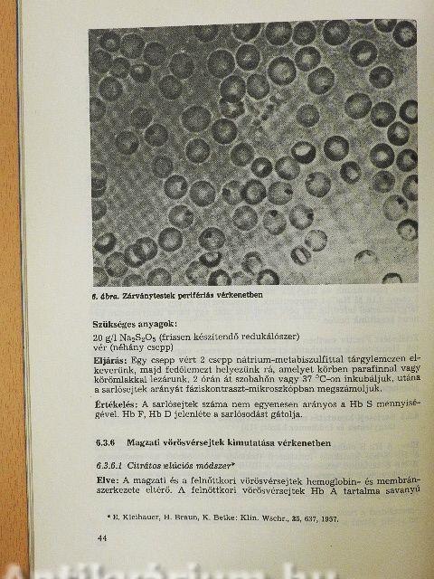 | A savi hemolízis vizsgálata (Ham-teszt) | 108 |