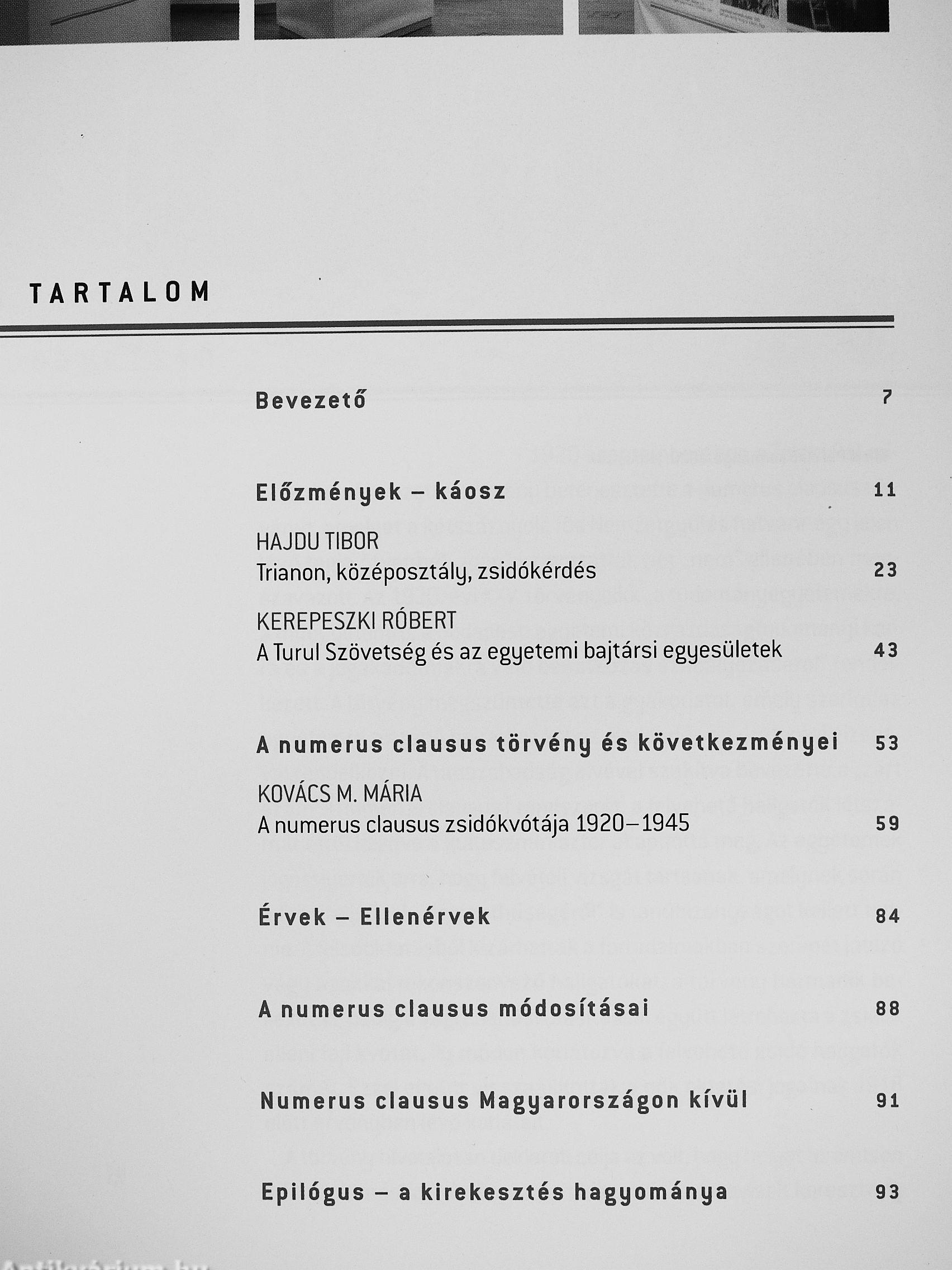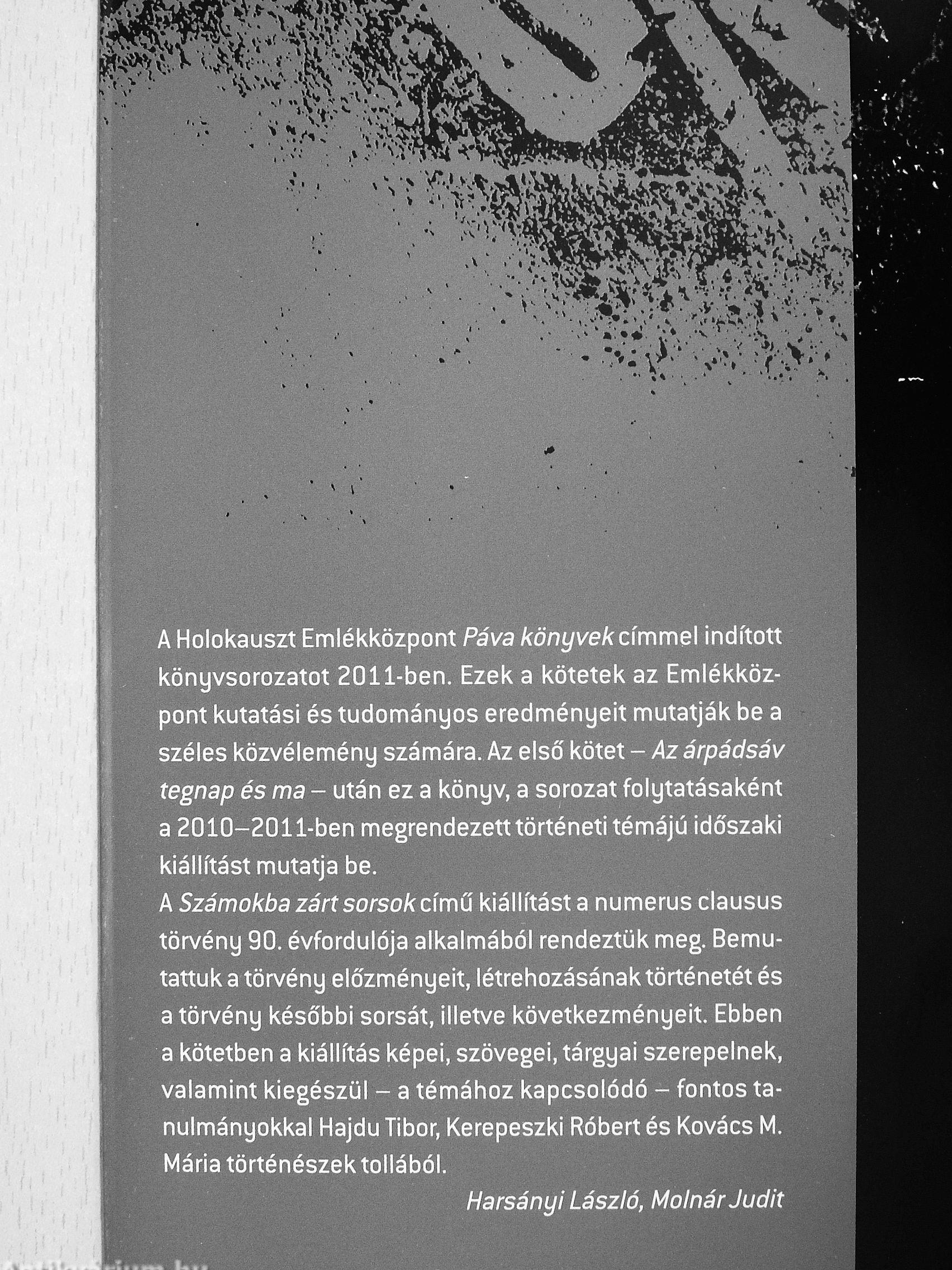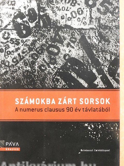 A Számokba zárt sorsok c\n\Q kiállítást a numerus clausus törvény 90. évfordulója alkalmából rendeztük meg. Bemutattuk a törvény előzményeit, létrehozásának történetét és a törvény későbbi sorsát, illetve következményeit. Ebben a kötetben a kiállítás képei, szövegei, tárgyai szerepeinek, valamint kiegészül - a témához kapcsolódó - fontos tanulmányokkal Hajdú Tibor, Kerepeszki Róbert és Kovács M. Mária történészek tollából.