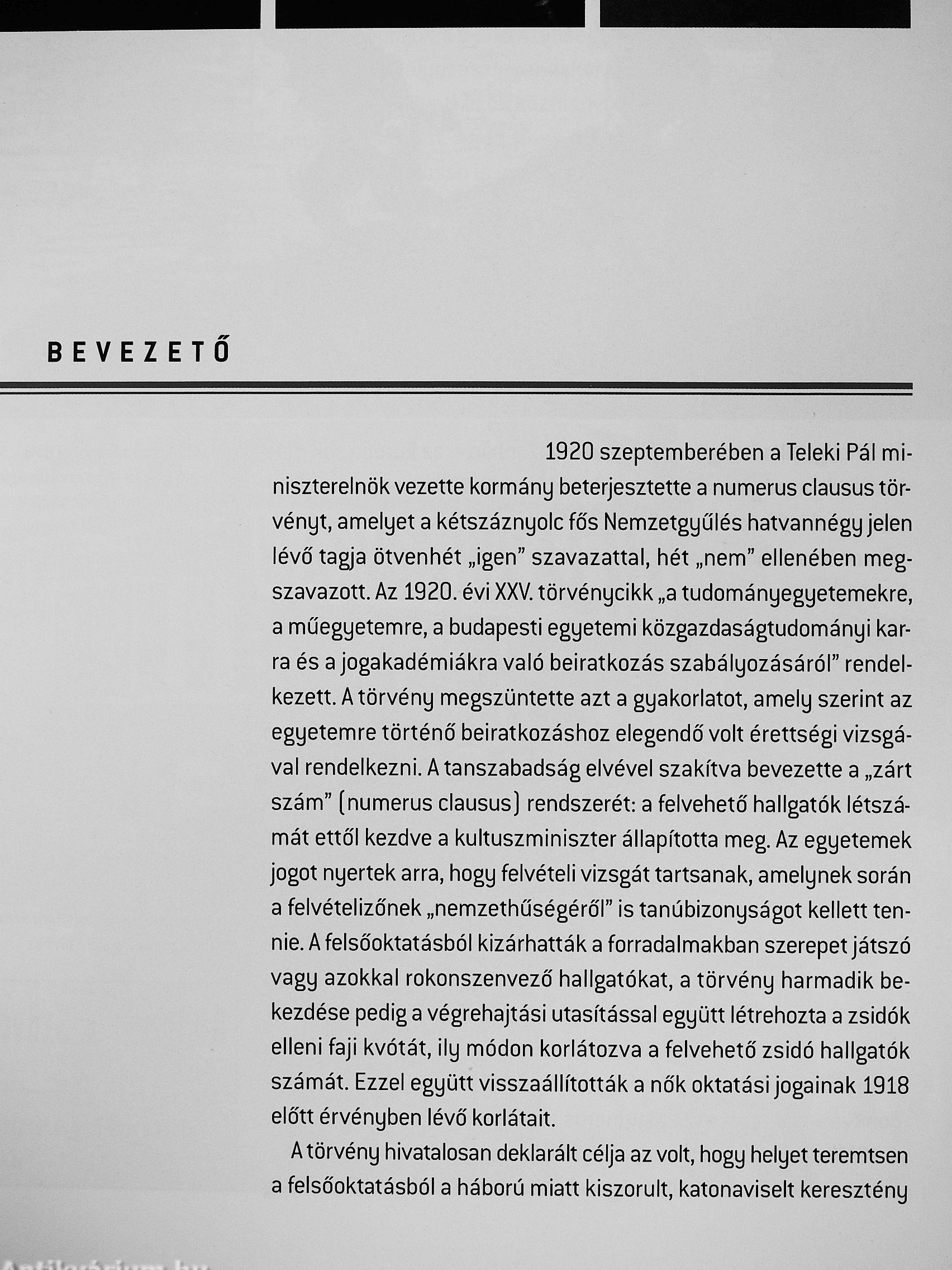Az 1920. évi XXV. törvénycikk a tanszabadság elvével szakítva bevezette a zárt szám (numerus clausus) rendszerét. A Horthy-korszak egyik emblematikus törvénye lett, az állami politika rangjára emelte a politikai antiszemitizmust. Hatása azért is számottevő, mert hosszan ható rossz példát adott arra, hogy miként képes felhasználni a politikai vezetés a tömegek indulatait a zsidó - vagy más - kisebbség megkülönböztetésére és jogfosztására.