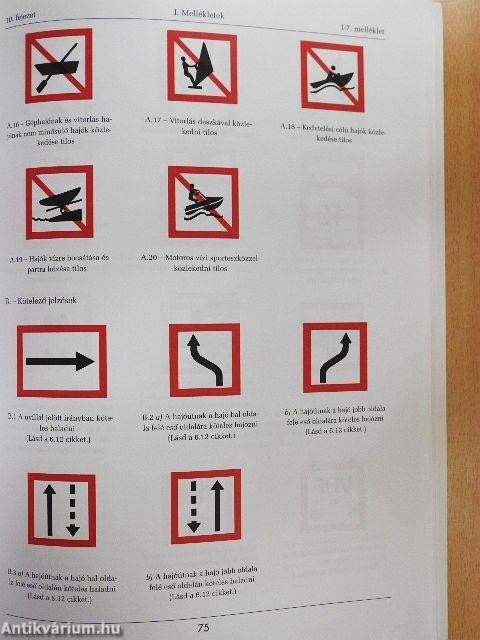 | Az úszó létesítmény jelei, látható jelzések, hangjelzések, rádiótelefon, a vízi út jelei (A 2. fejezethez csatolva) | |
