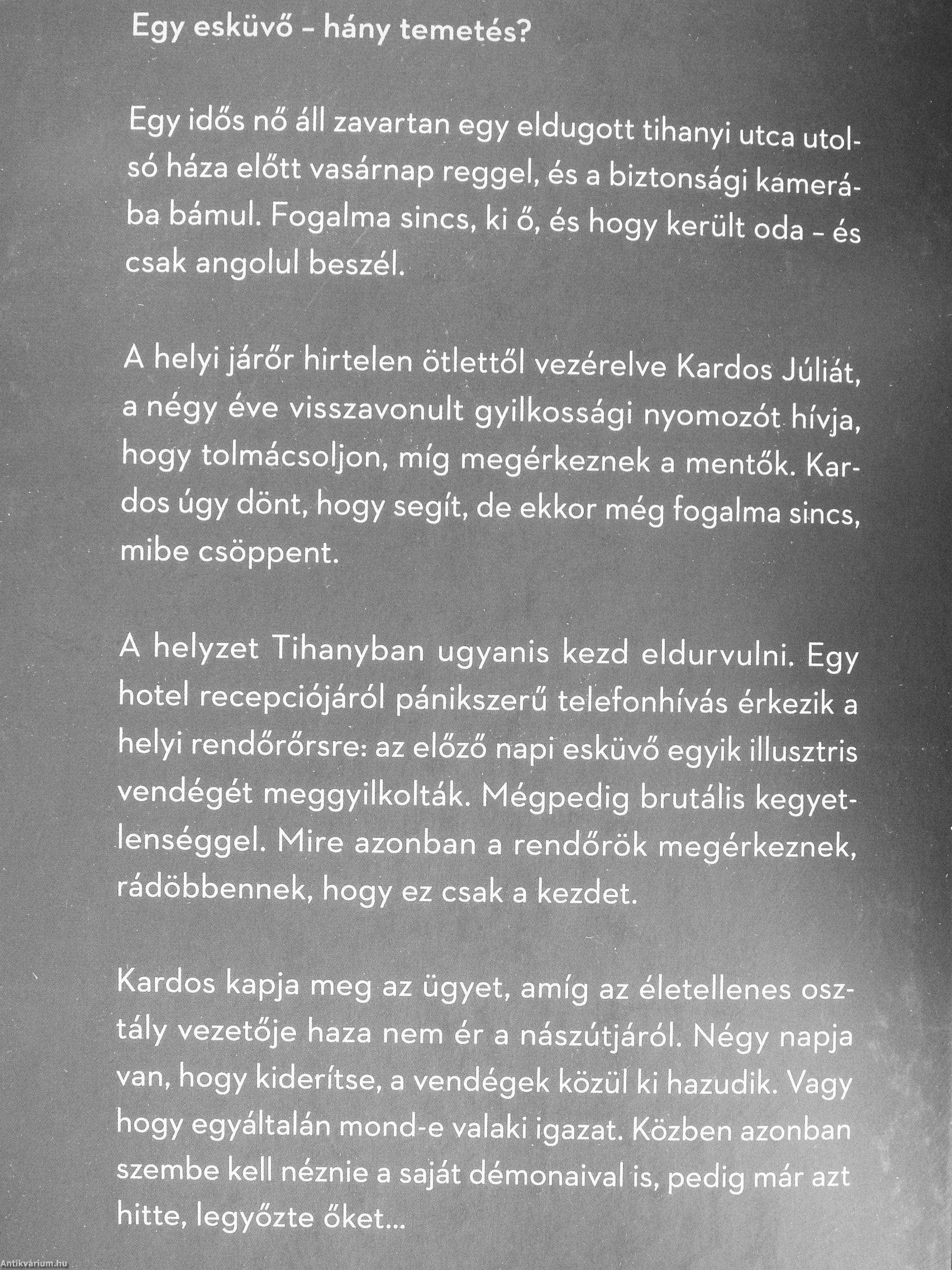 Kardos kapja meg az ügyet, amíg az életellenes osztály vezetője haza nem ér a nászútjáról. Négy napja van, hogy kiderítse, a vendégek közül ki hazudik. Vagy hogy egyáltalán mond-e valaki igazat. Közben azonban szembe kell néznie a saját démonaival is, pedig már...