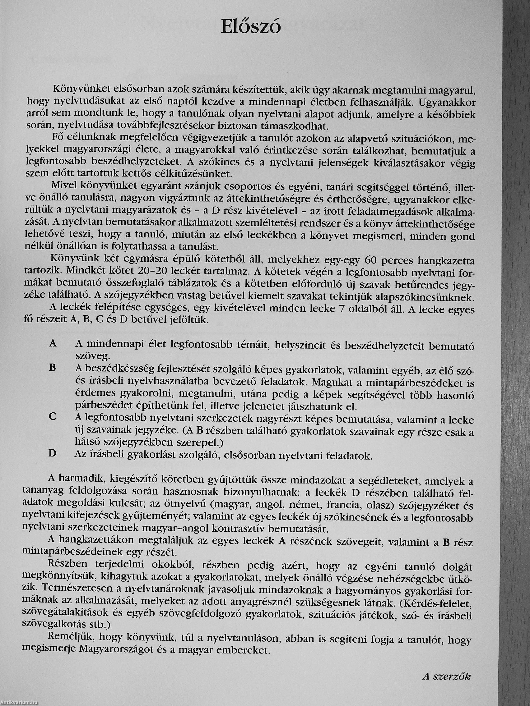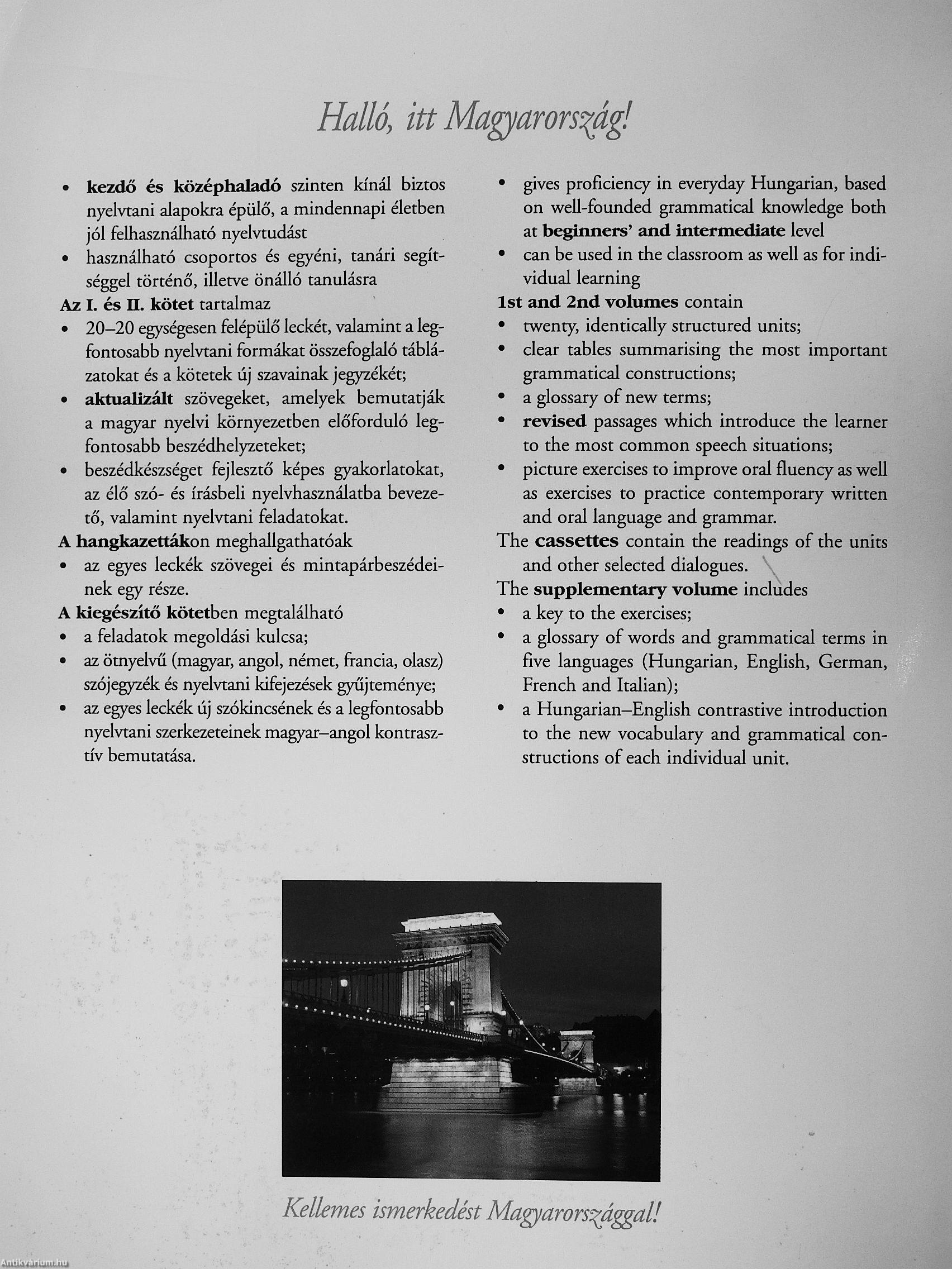 • gives proficiency in everyday Hungarian, based on well-founded grammatical knowledge both at beginners' and intermediate level